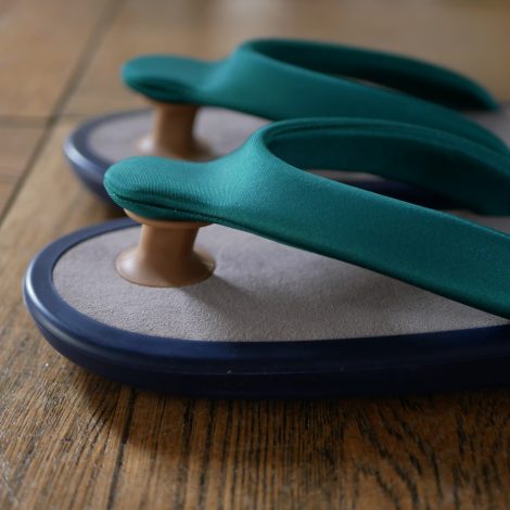 今回のモデルはネイビーやグレー、ベージュというベーシックカラーにエメラルドグリーンの鼻緒がポイントになっています。