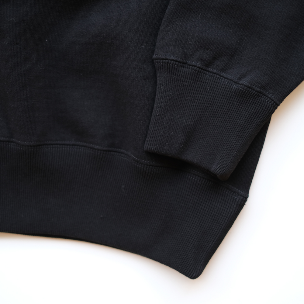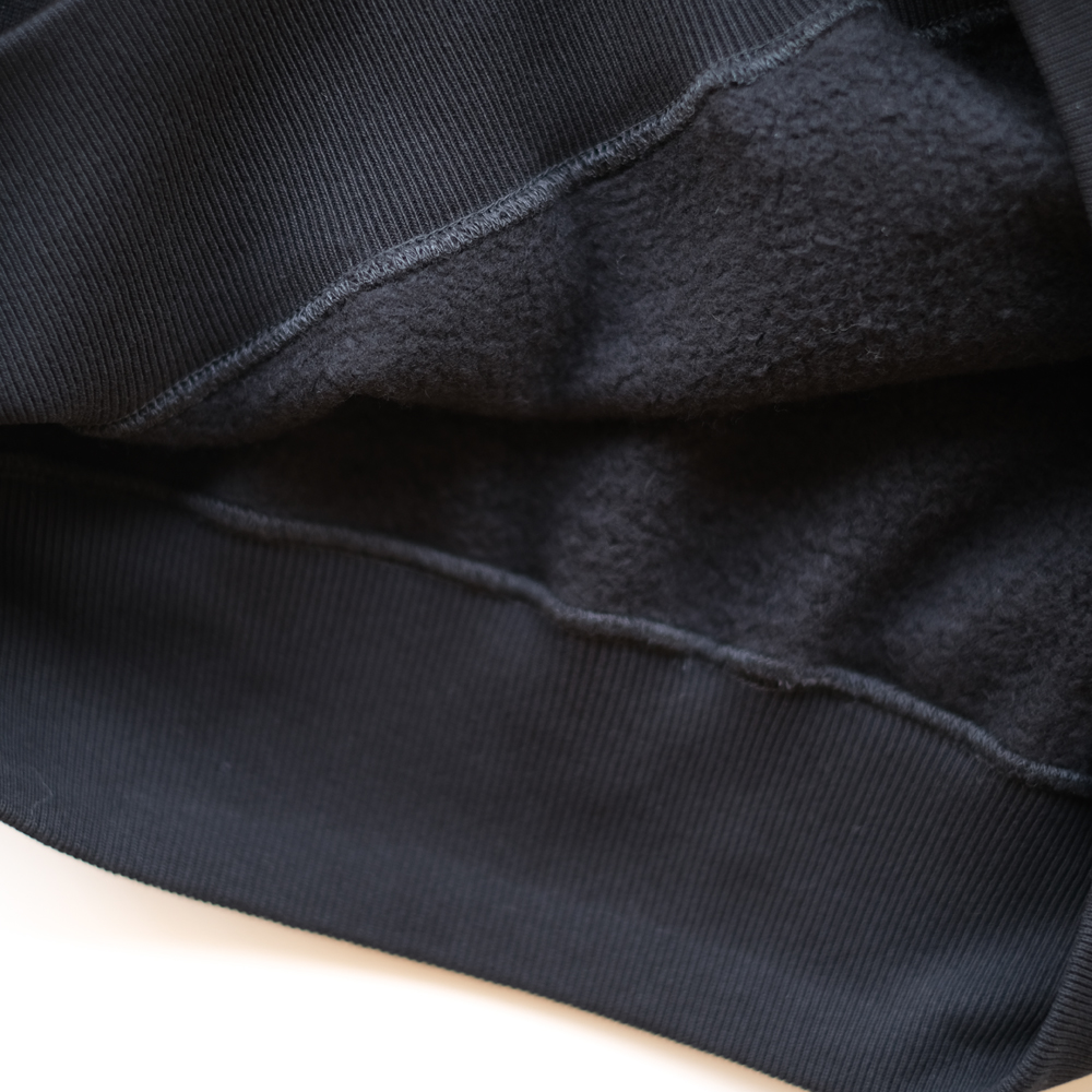 こちらは希少な旧編機である吊り編み機を使い、ヴィンテージ感のある粗野なコットンをゆっくりと時間をかけて編み上げたスウェット素材です。微細な凹凸感が出るように編み度目を調整し、空気を含んだような膨らみのあるしっかりとした風合いに仕上げられたアイテムです。