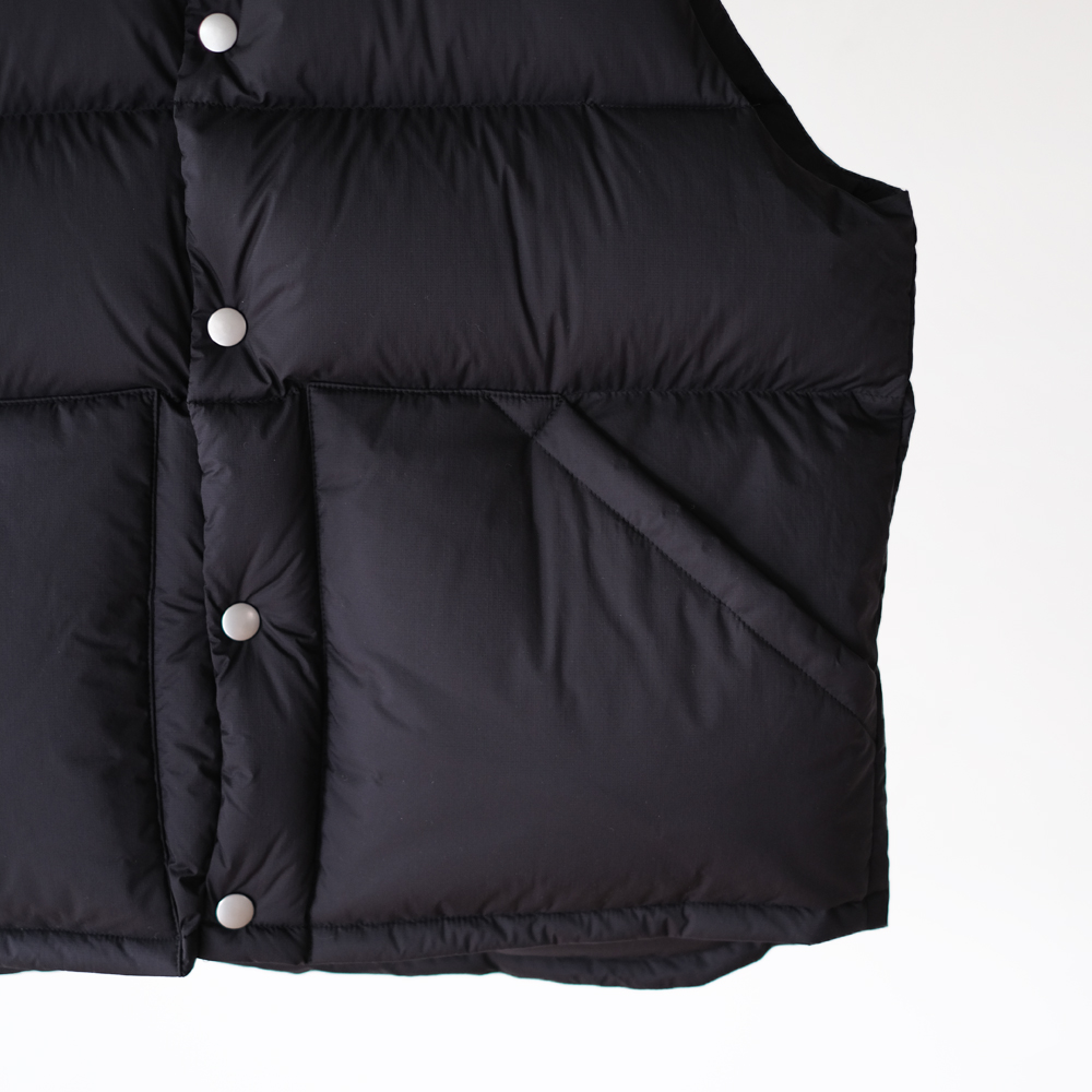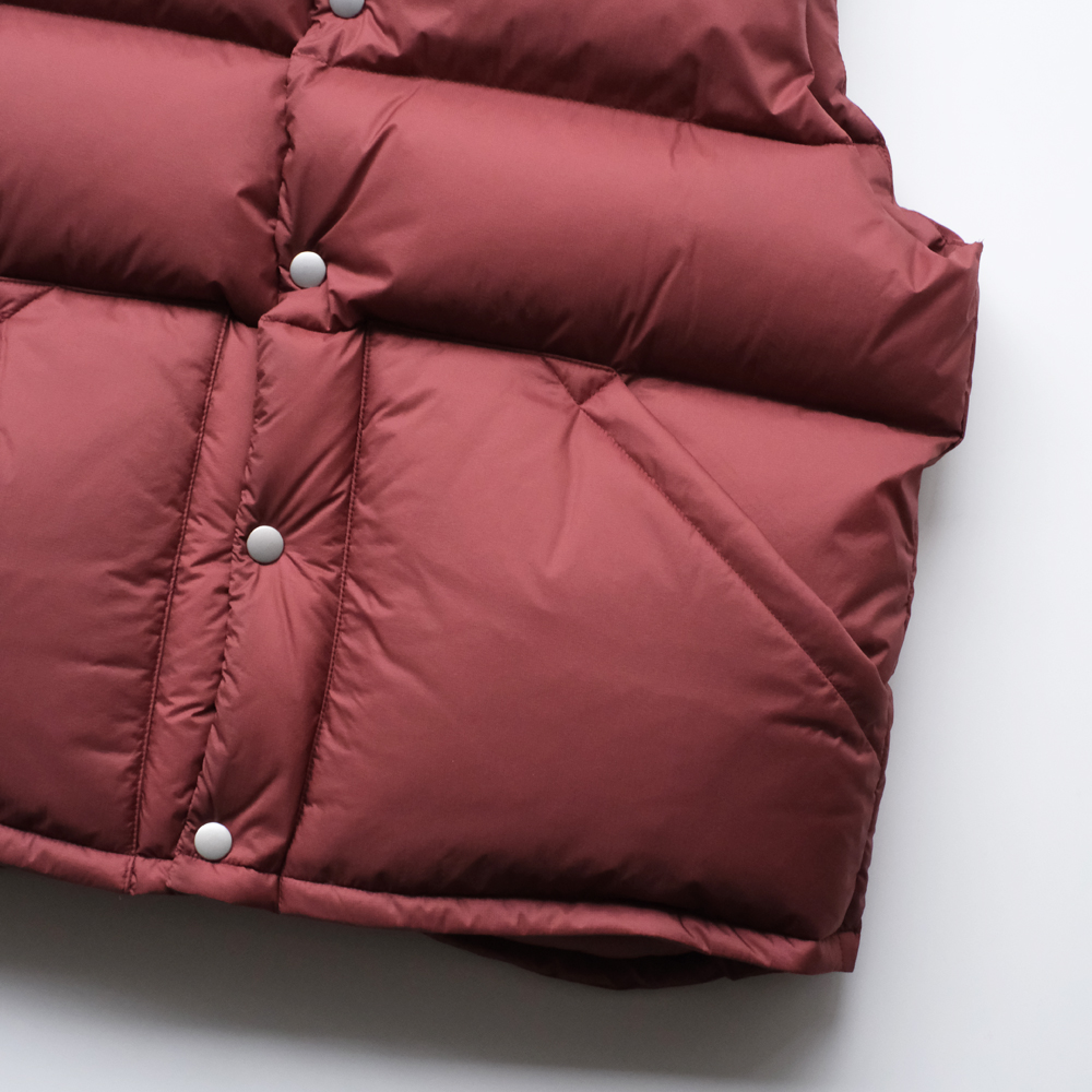 こちらはこちらのダウンは15デニールの極細ナイロンウーリー糸を使用した超軽量で極薄なミニリップストップ生地を採用し、裏面には特殊なウレタンコーティングを施すことで、防風性と撥水性を兼ね備えた高機能素材に仕上げられております。中綿にはフランス産のホワイトダックダウンを使用し、軽くふっくらとした質感を実現しています。ボリューム感がありながらも驚くほど軽量で、暖かさをしっかりと保ちながら快適な着心地を味わうことが出来る一着です。