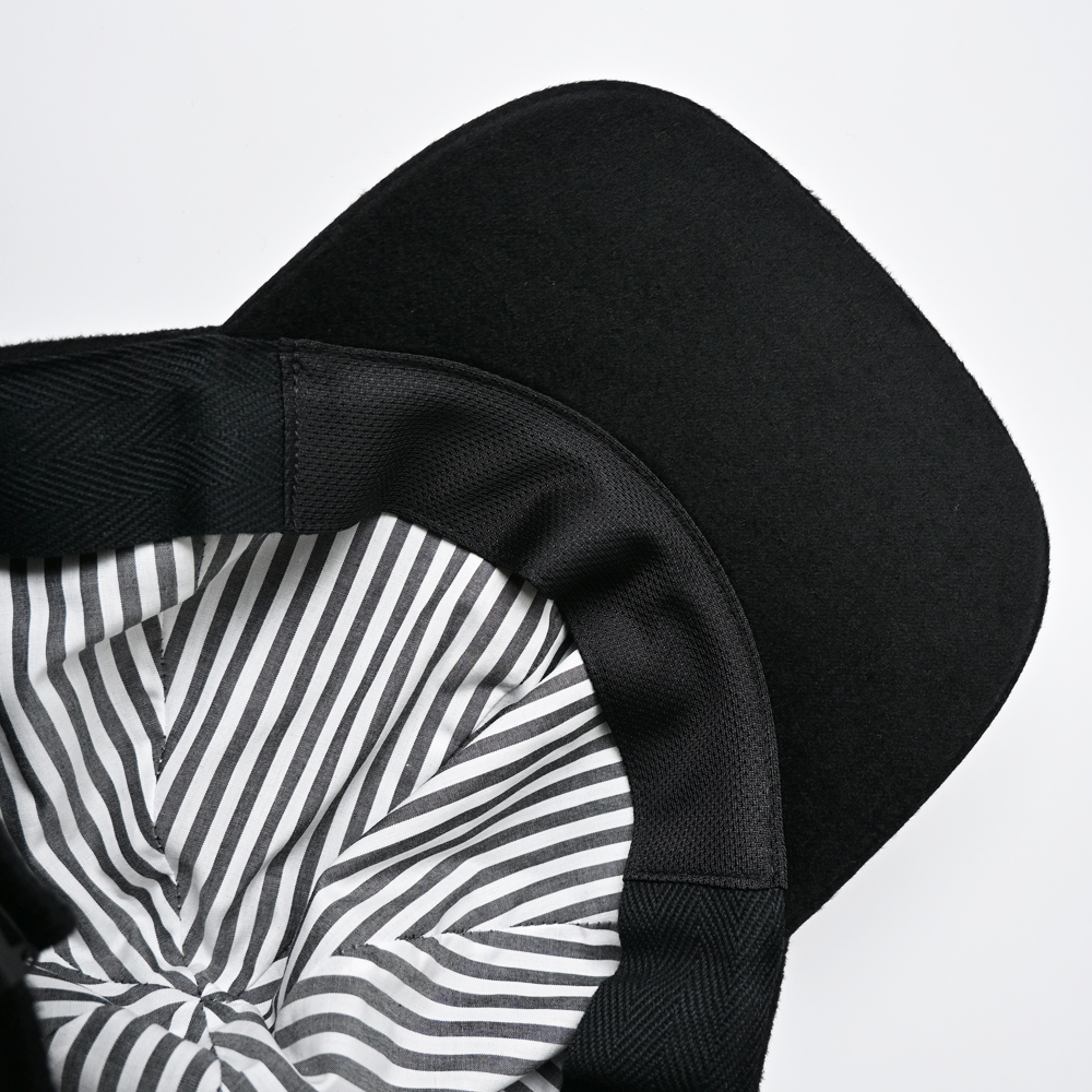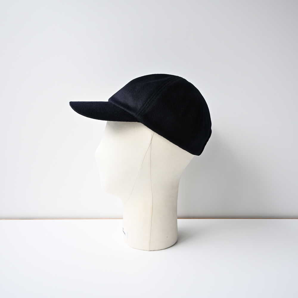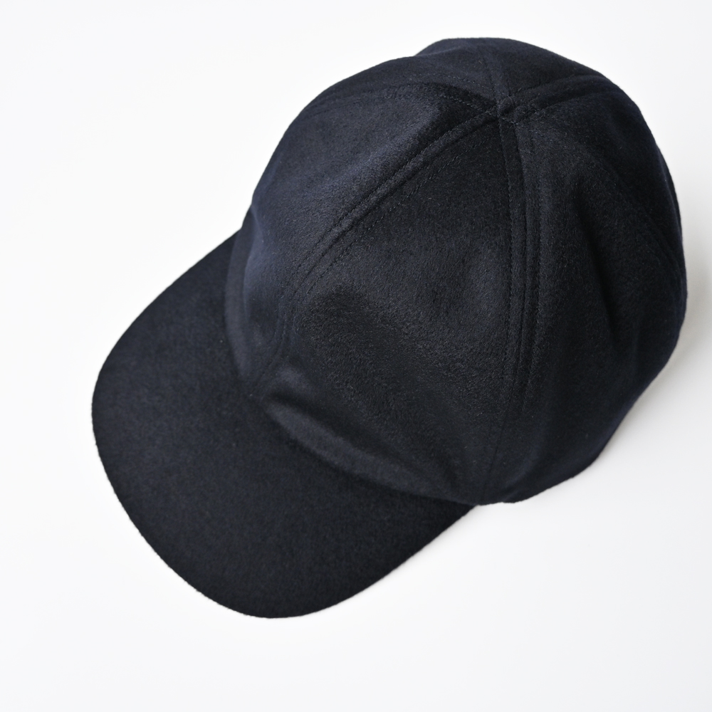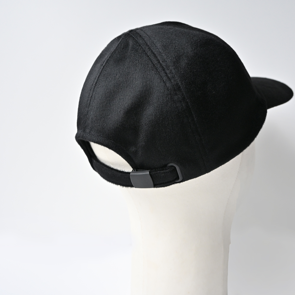 こちらはカシミヤ100%の生地を使用した6パネルのキャップです。後ろ部分のサイズ調整はマジックテープになります。