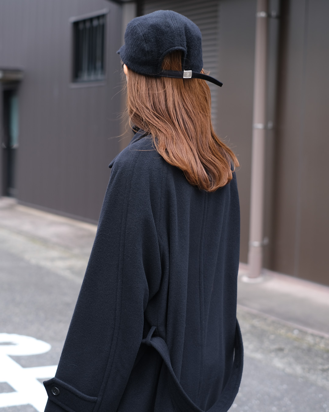 こちらは上品なアンゴラウールシャギーの艶感のある柔らかな風合いが魅力のジェットキャップになります。コットンツイルのアジャストベルトにオリジナルスライドバックルを配した上品な一点です。
