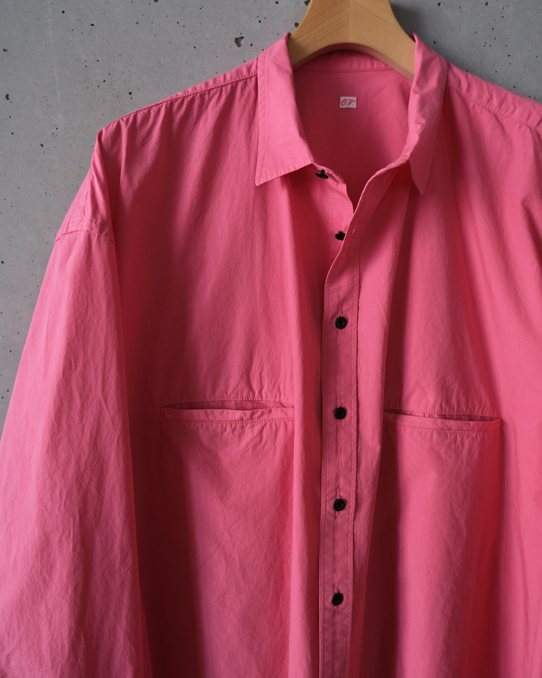 こちらはオーバーサイズのレギュラーカラーシャツになります。 メキシコ原産のピマコットンを使い織り上げた高密度タイプライターで、しなやかさとはりのある生地感を感じていただける一着となっております。
