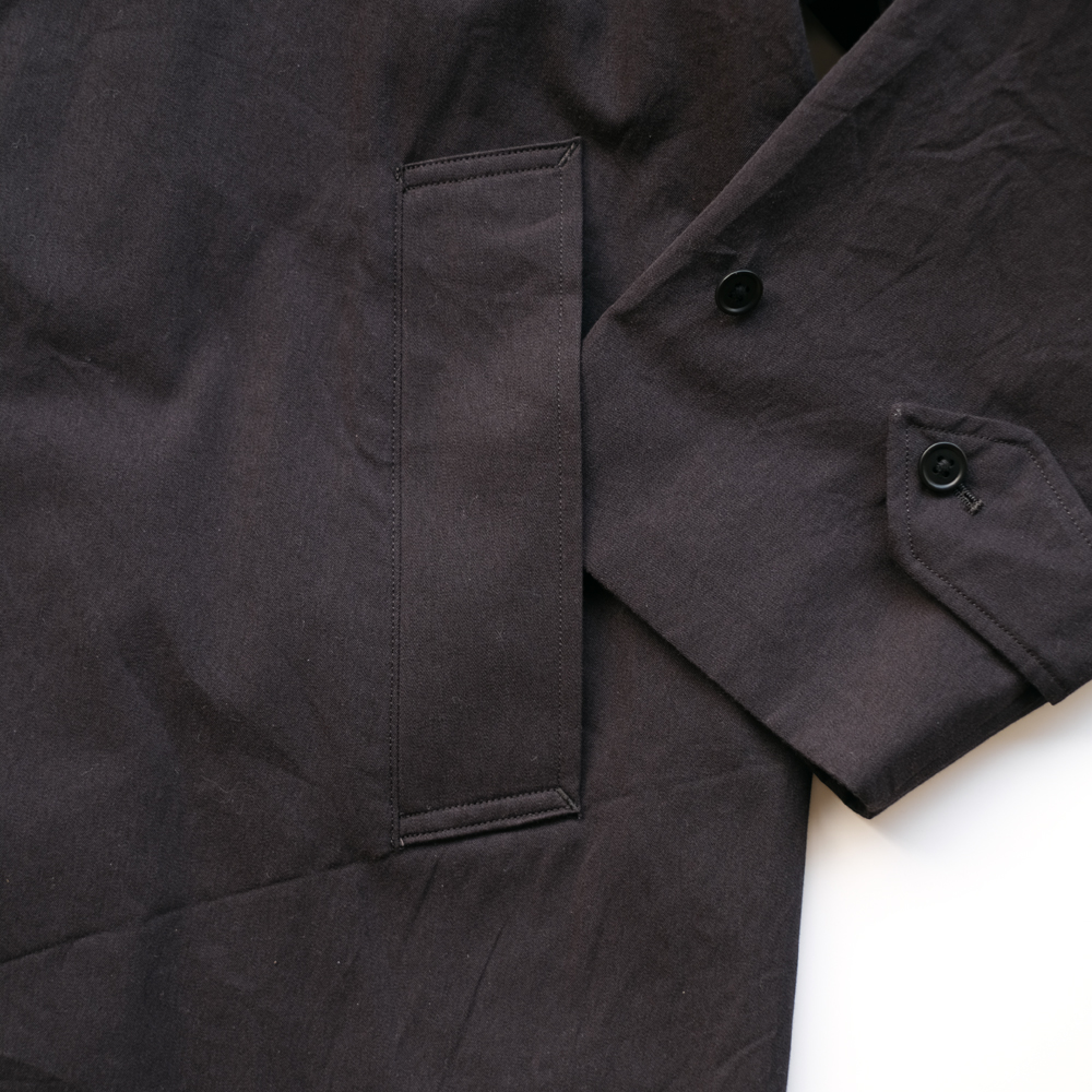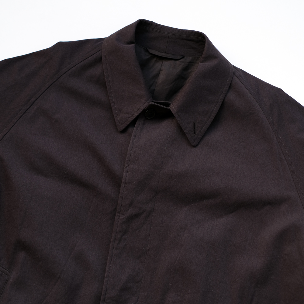 こちらは杢糸(もくいと)にした超長綿GIZAとSUPIMAの細番手を使用してシャンブレーにて高密度に織り上げた新作のコットンより杢ギャバジン素材のコートになります。 洗い晒しの風合いも抜群な一着です。