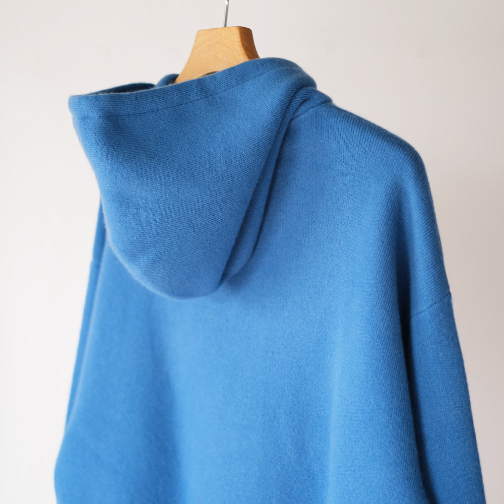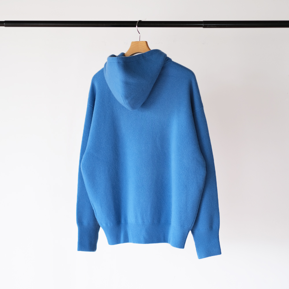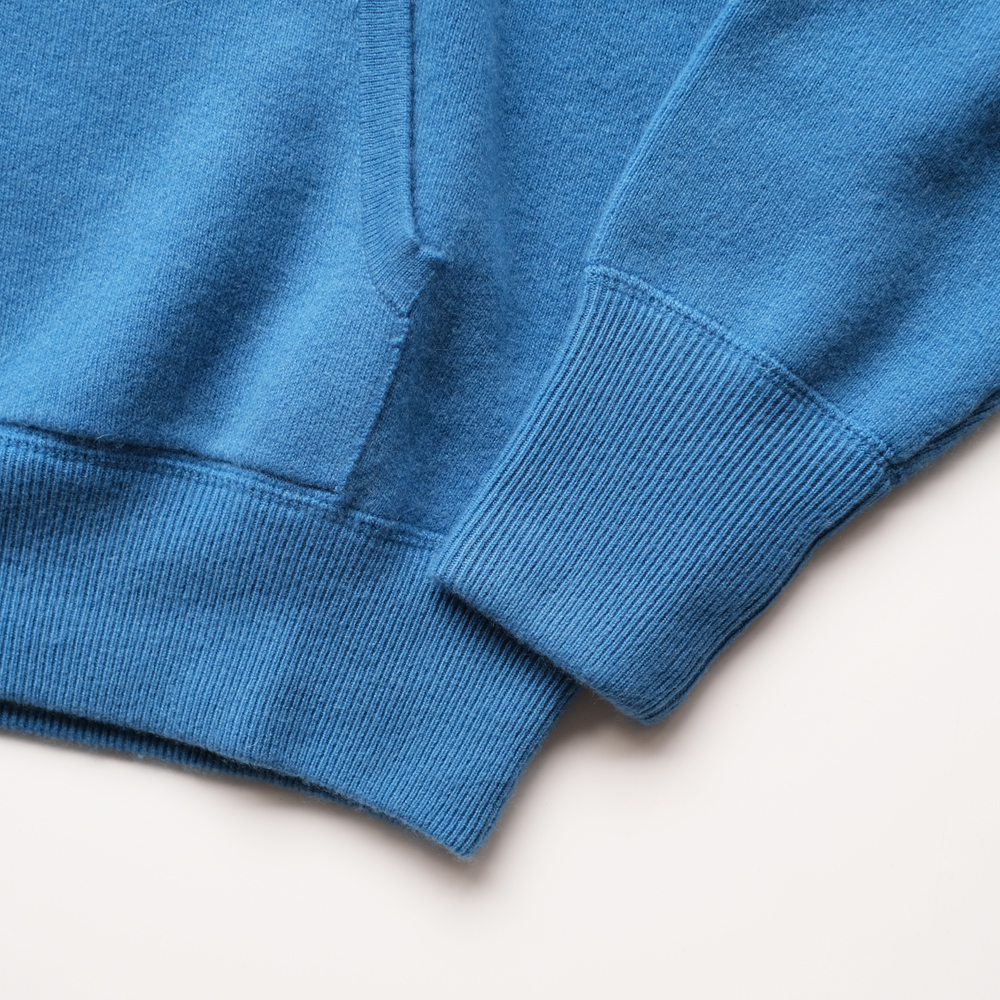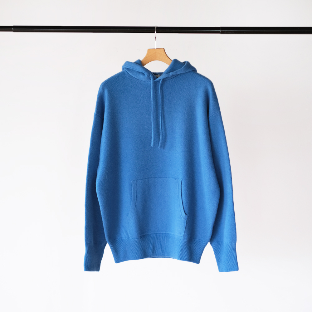 いつも着ているスウェットを最高級のカシミヤで作り上げた究極のデイリーウェア。極細のカシミヤ毛を束ねて敢えて太くした繊維を度詰めにしており、通常の約3倍程の厚みを出しています。これによって見た目は迫力がありますが軽くて優しい着心地に仕上げており、程よくリラックス感がありクラシックなボックスシルエットが特徴です。