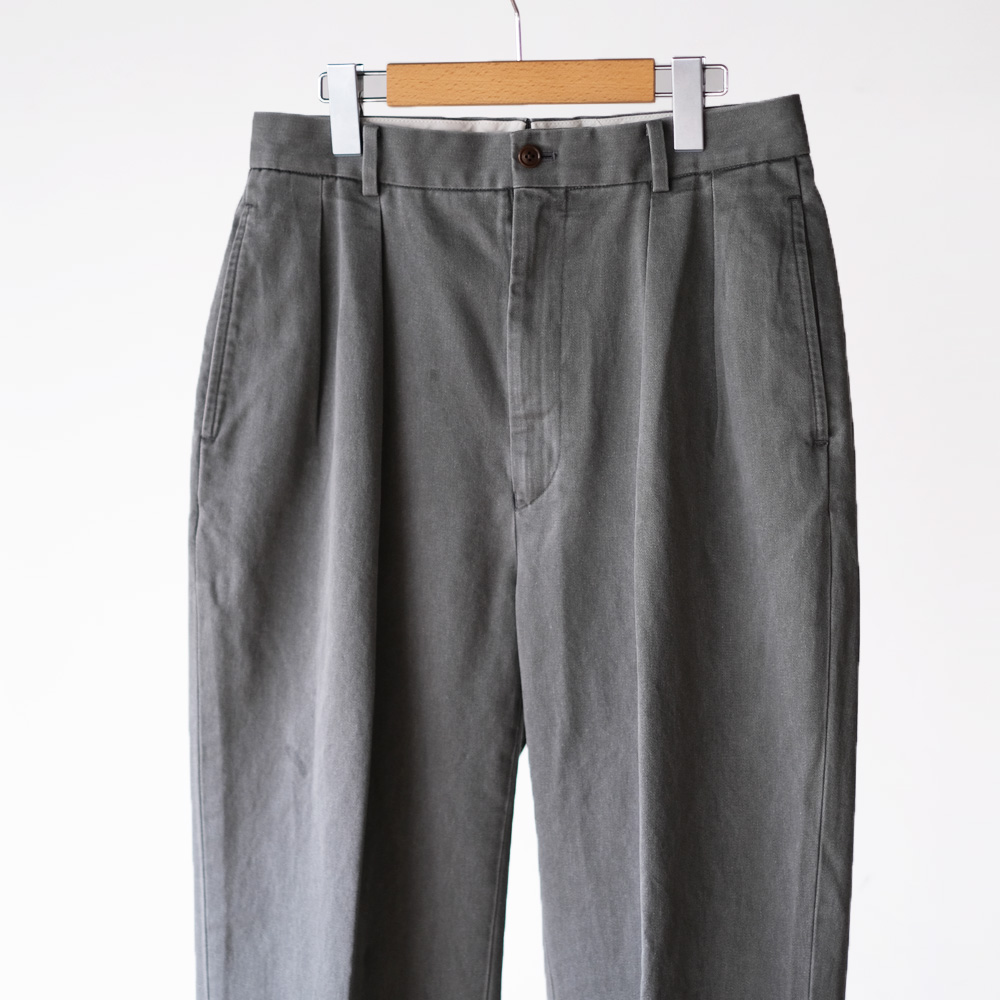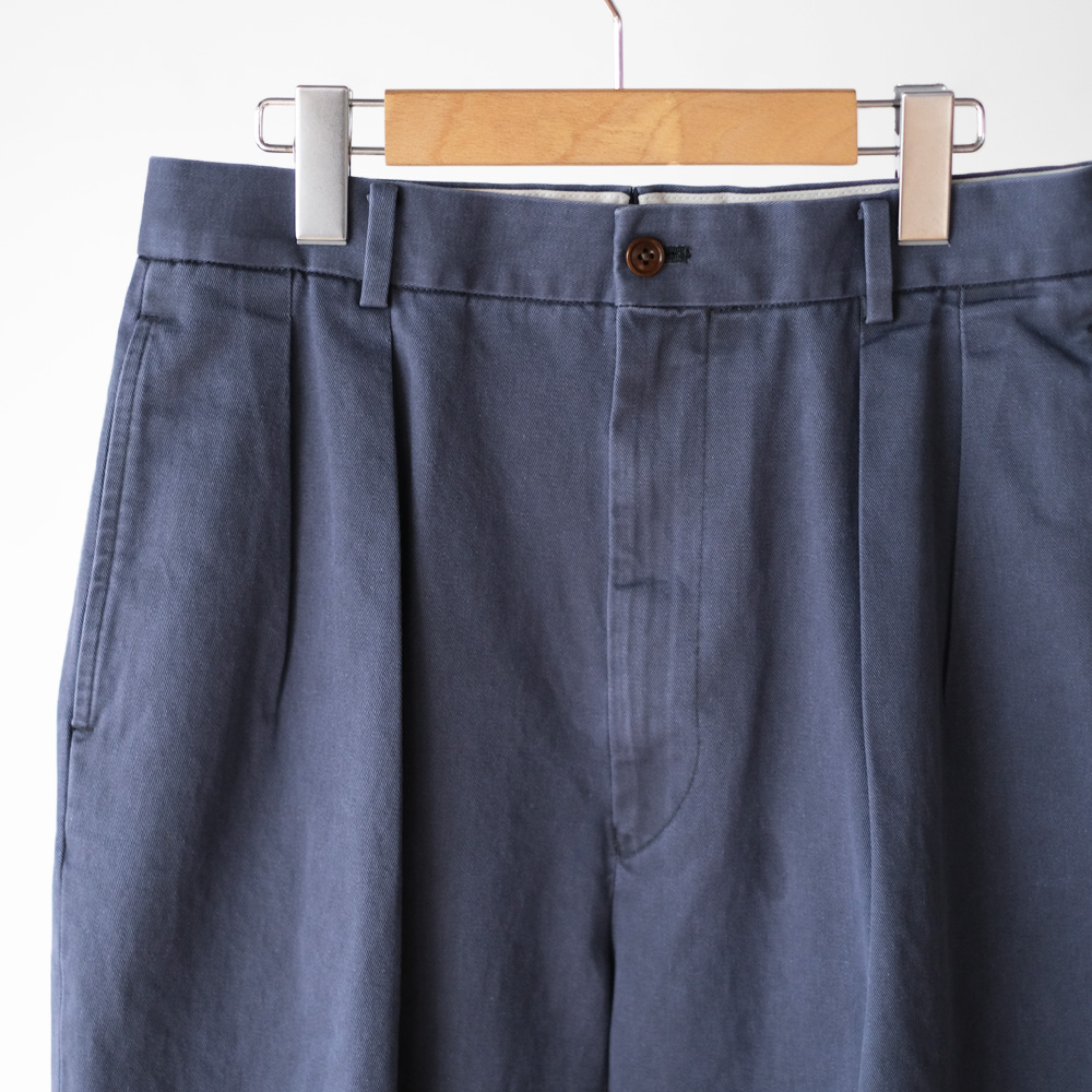 こちらは70年代のブルックスブラザーズのスラックスをベースに新たにパターンから作成したチノトラウザーになります。チノクロスに特殊な洗い加工を施す事で独特な風合いにしており、定番モデルではワイドシルエットに近いですが、持ち出し部分を無くしたりジップフロントに仕様など細かいディテールも変更されています。