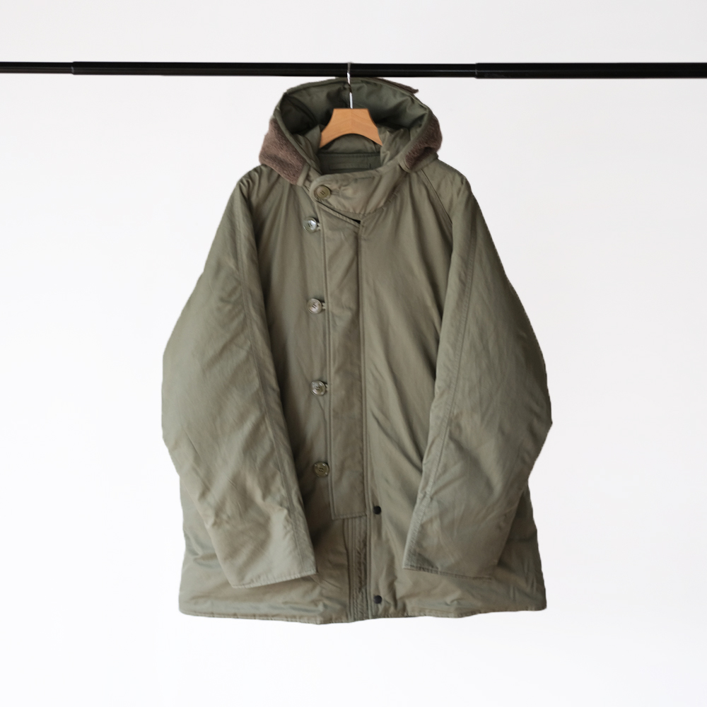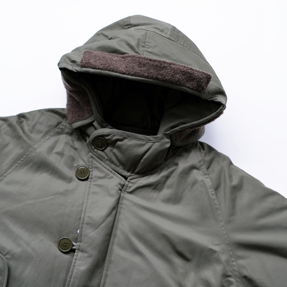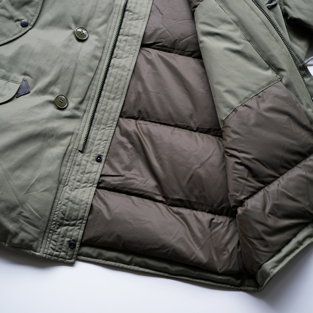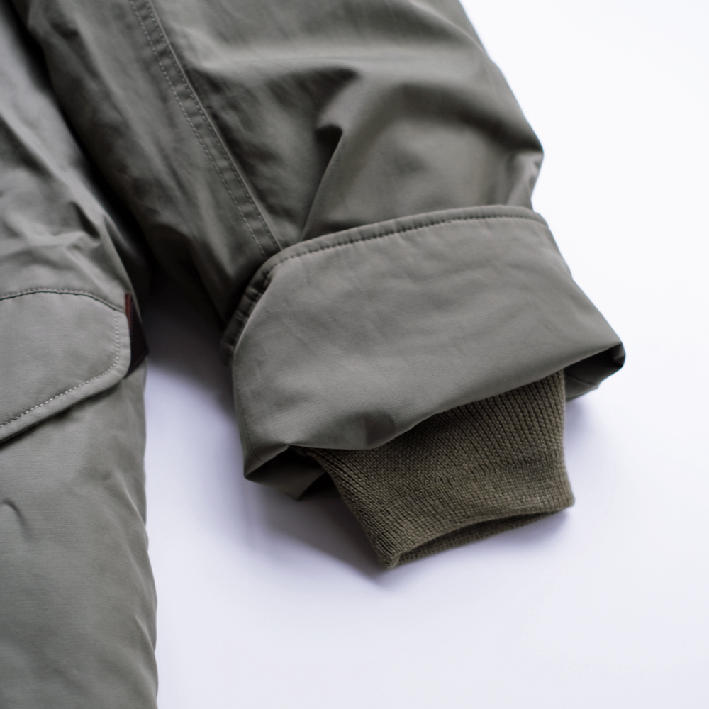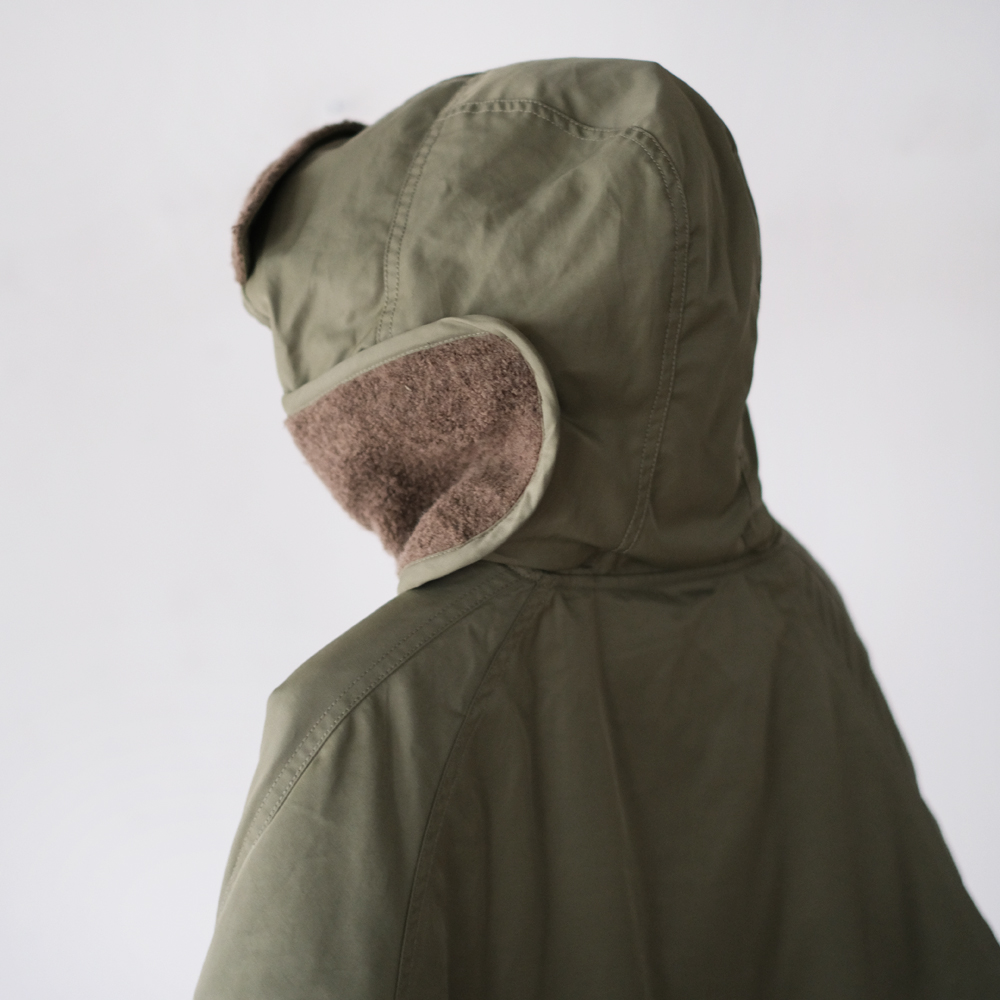 こちらは1970年代のアメリカ空軍のグランドクルーに着用されていた”CWU -8/P”を元にデザインされました。CWU-8Pは通称ラビットパーカーと呼ばれ、古着市場では希少なアイテムです。中綿には贅沢にダウンとフェザーを使用しており、とても軽量で保温性にも優れております。