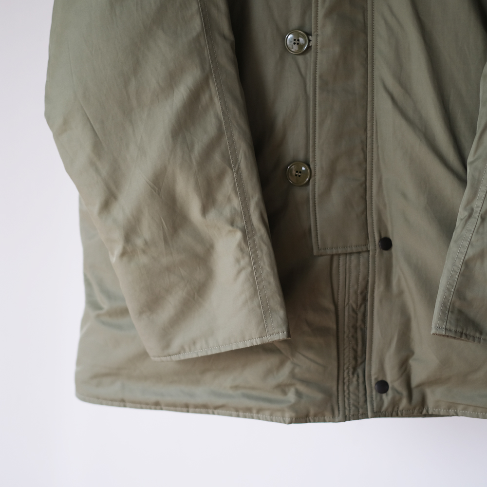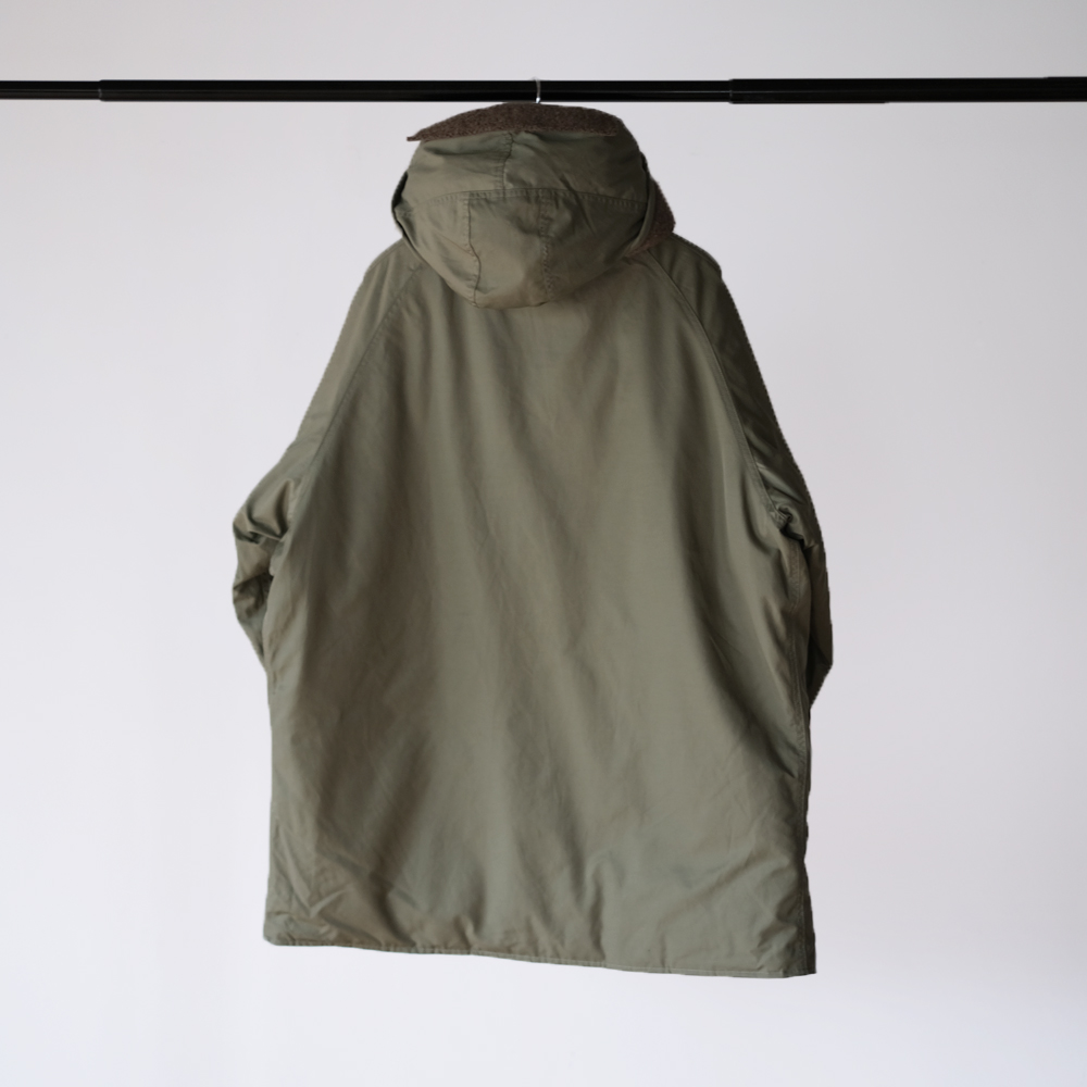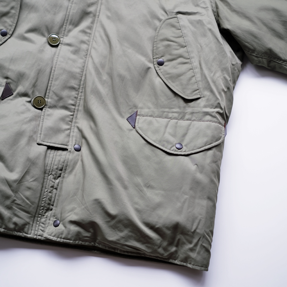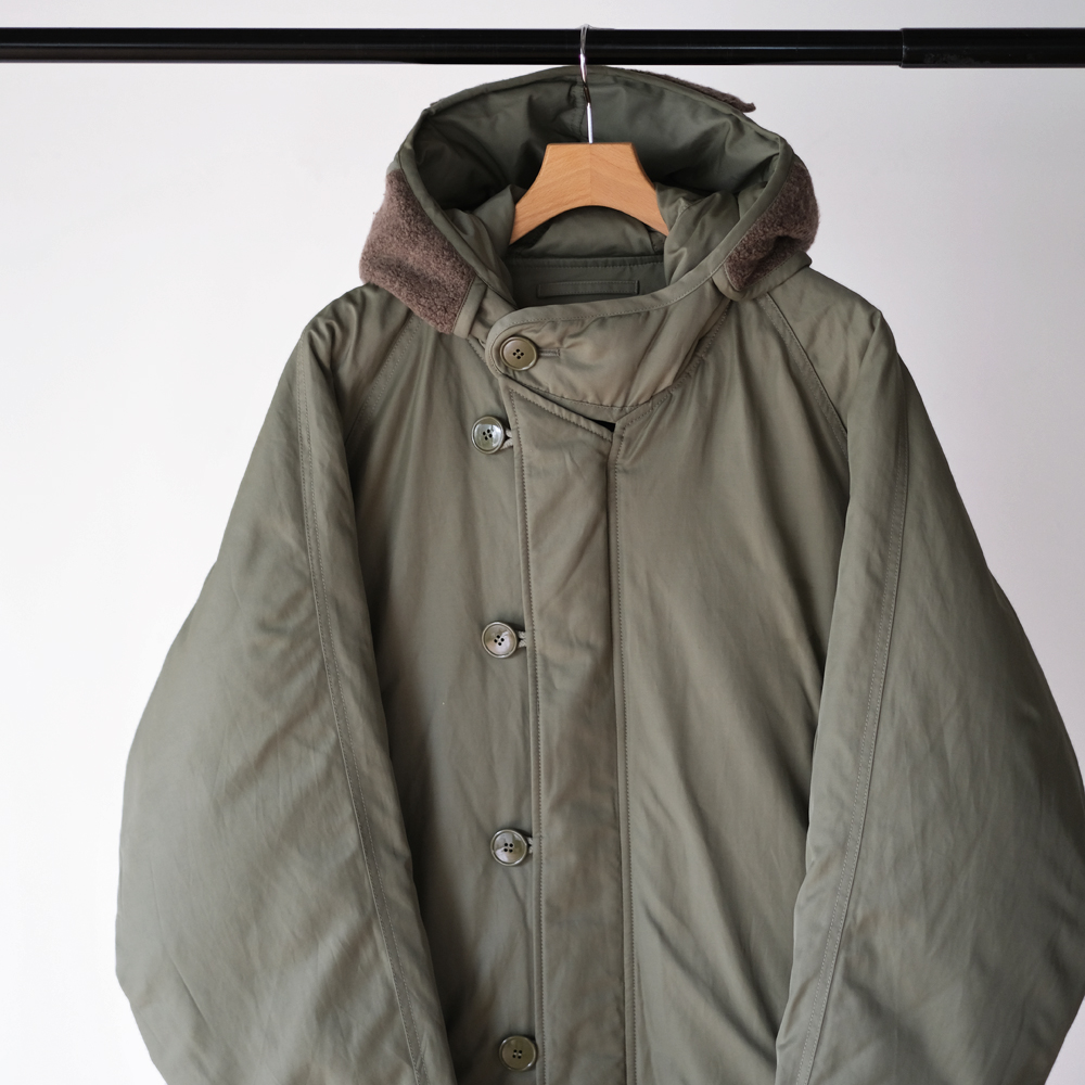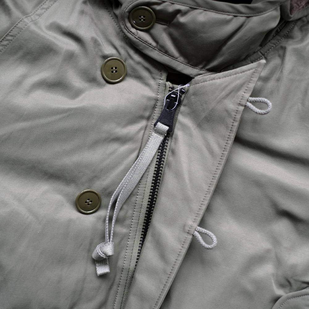 こちらは1970年代のアメリカ空軍のグランドクルーに着用されていた”CWU -8/P”を元にデザインされました。CWU-8Pは通称ラビットパーカーと呼ばれ、古着市場では希少なアイテムです。中綿には贅沢にダウンとフェザーを使用しており、とても軽量で保温性にも優れております。