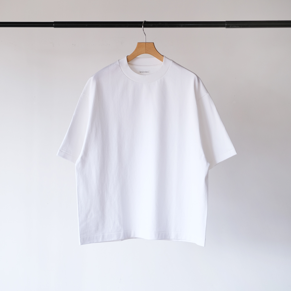 こちらは選りすぐりの超長綿スヴィンとアメリカ産の上質長綿スーピマをブレンドして紡績したミドルウェイトのチューブ天竺Tシャツになります。糸に程良くツイストを施してシャリ感を持たせつつも原料本来の滑らかな肌触りや光沢感を併せ持っており、着込む程に良さを増すブランドの定番素材です。