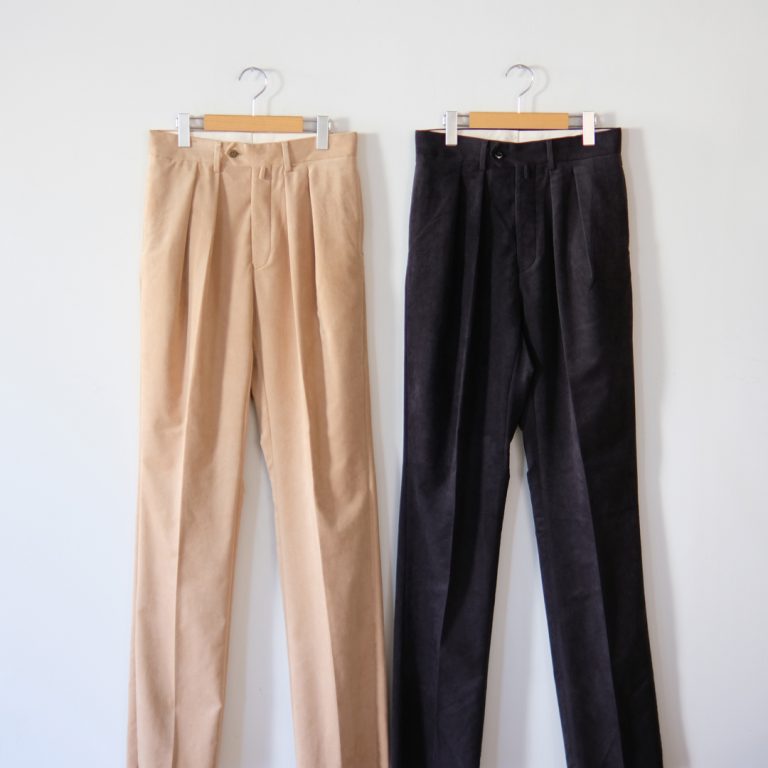 <NEAT>の2022 A/W Collectionよりこちらのフェイクスエードを使用したスラックスをご紹介します。