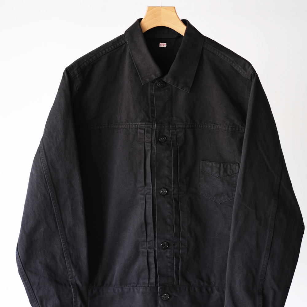 こちらはあのデニムジャケットを<OUTIL>のフィルターを通してデザインされました。経糸にギリシャピマコットンの単糸、緯糸にインドスビンコットンの双糸を使用し作成した最高級オリジナルチノ素材になります。経糸に程よいムラ感があるため綾目が立体的になっています。