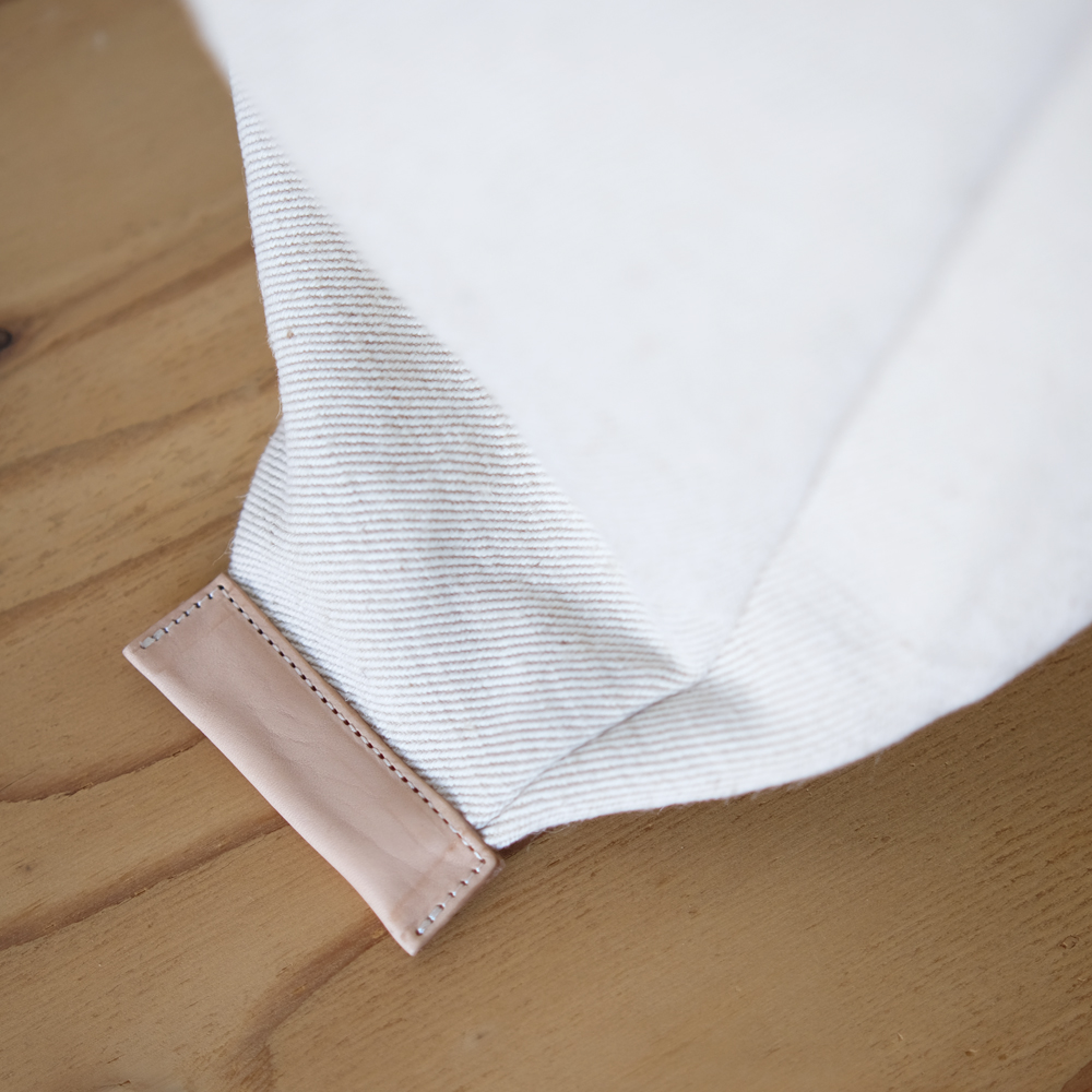 こちらは日本に古くから存在するあづま袋をデザインソースに極厚の綿麻ツイルを使用したバッグになります。肩掛けも出来てPCや書類も入る収納力が特徴となっています。ハンドルにベジタブルタンニン鞣しの牛革を使用しているので、使い込むごとに手に馴染んでいきます。