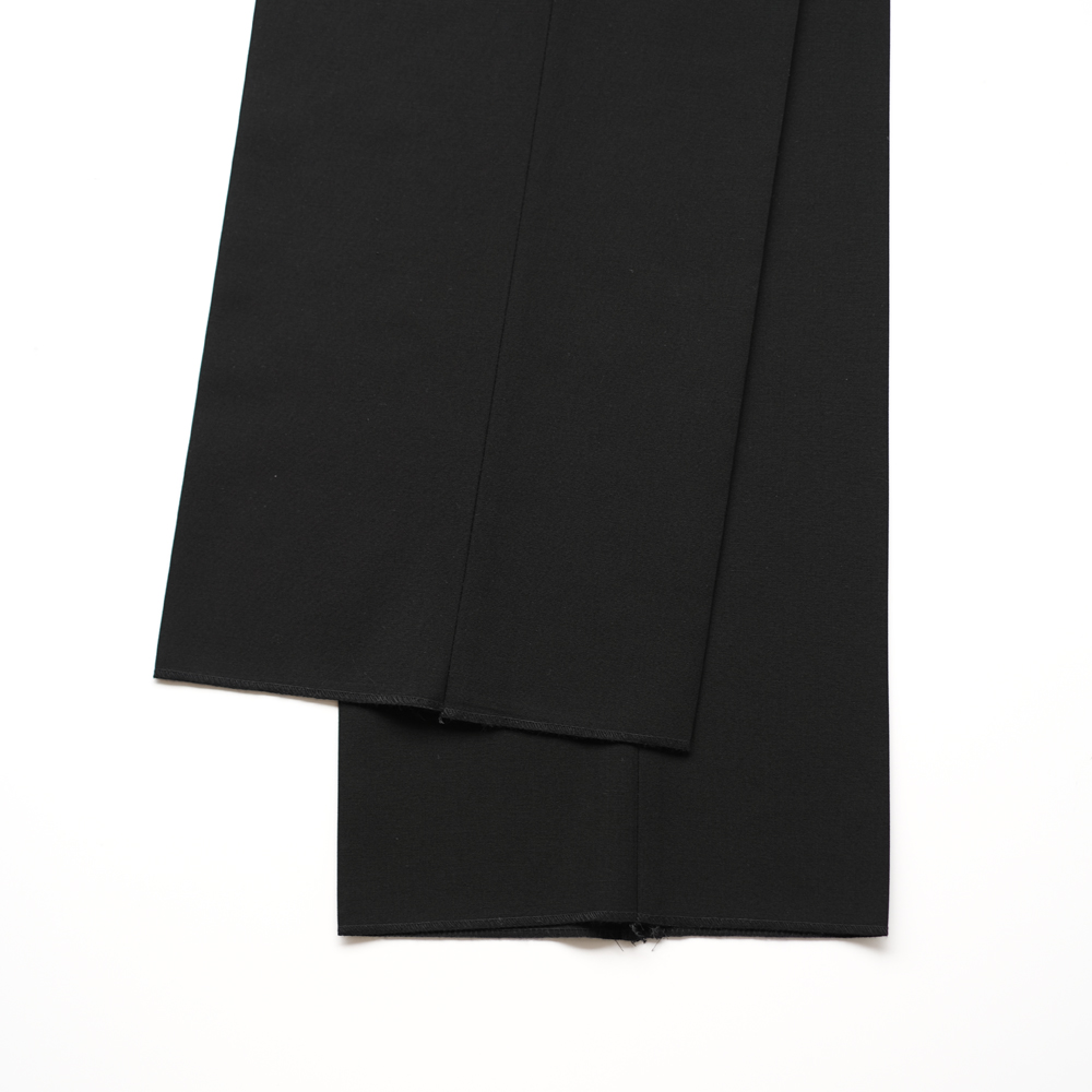 こちらは平織りながらタテ糸の密度がヨコ糸に比べておよそ1.3倍になっているウールポプリン生地になります。 使用している糸はタテヨコともにメリノウール(2/60)とオーソドックスですが、仕立て映えや耐久性に優れた糸番手となっております。 また低速織機で丁寧に織り上げられることによりウールの膨らみと滑らかさを活かしており、ポプリンならではのハリコシと僅かに見える横畝と独特の光沢感が特徴的な一着です。