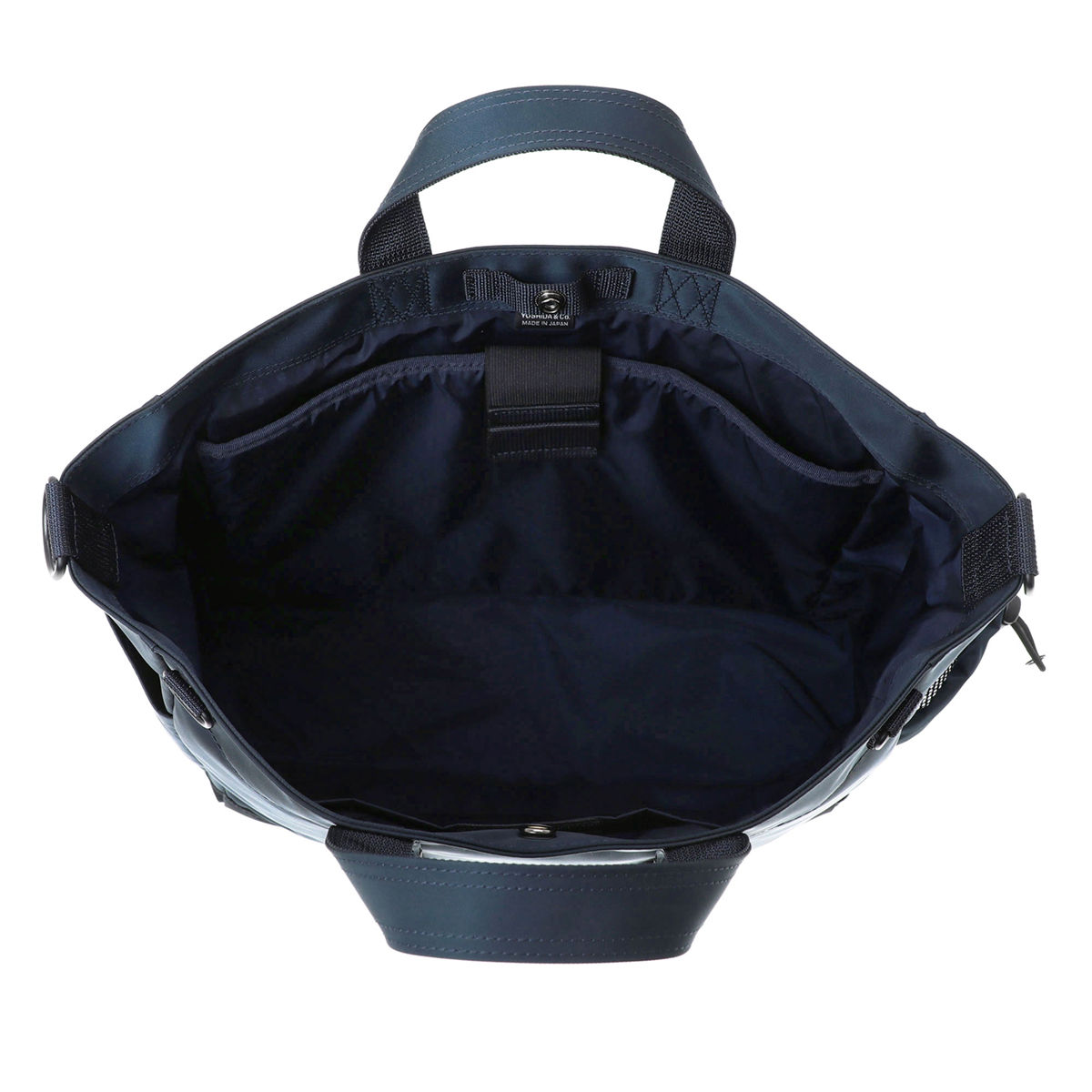 2WAYトートバッグはA4の書類が収納できるサイズで、内装に13inchのPCを収納できるクッション材入りのポケットを設けています。サイドポケットには600mlのペットボトルや折り畳み傘が収納可能です。