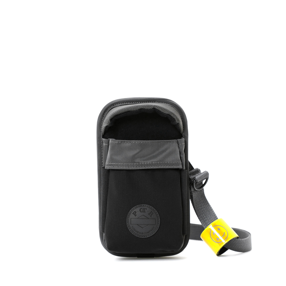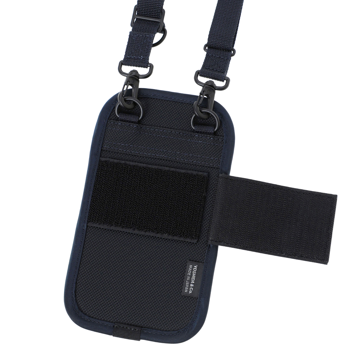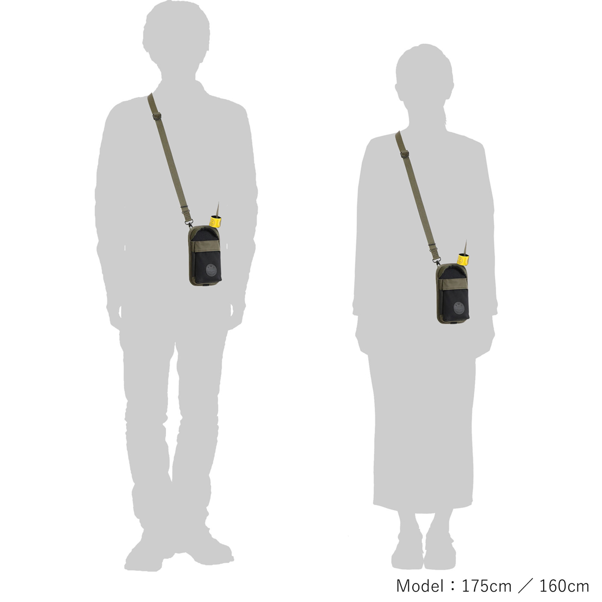 GPSホルダーはスマートフォンやアイウェアの収納に最適なアイテムです。内装に起毛素材を採用しているため、収納したアイテムの損傷を防ぎます。伸縮性のあるメッシュ生地を採用したフロントポケットは、ワイヤレスイヤホンなどの収納に適しています。また、背面に配したベルトでデイパックのストラップ部分などにアタッチメントが可能です。
