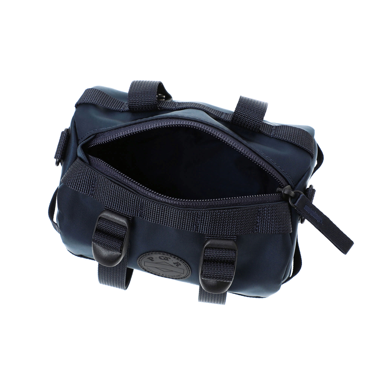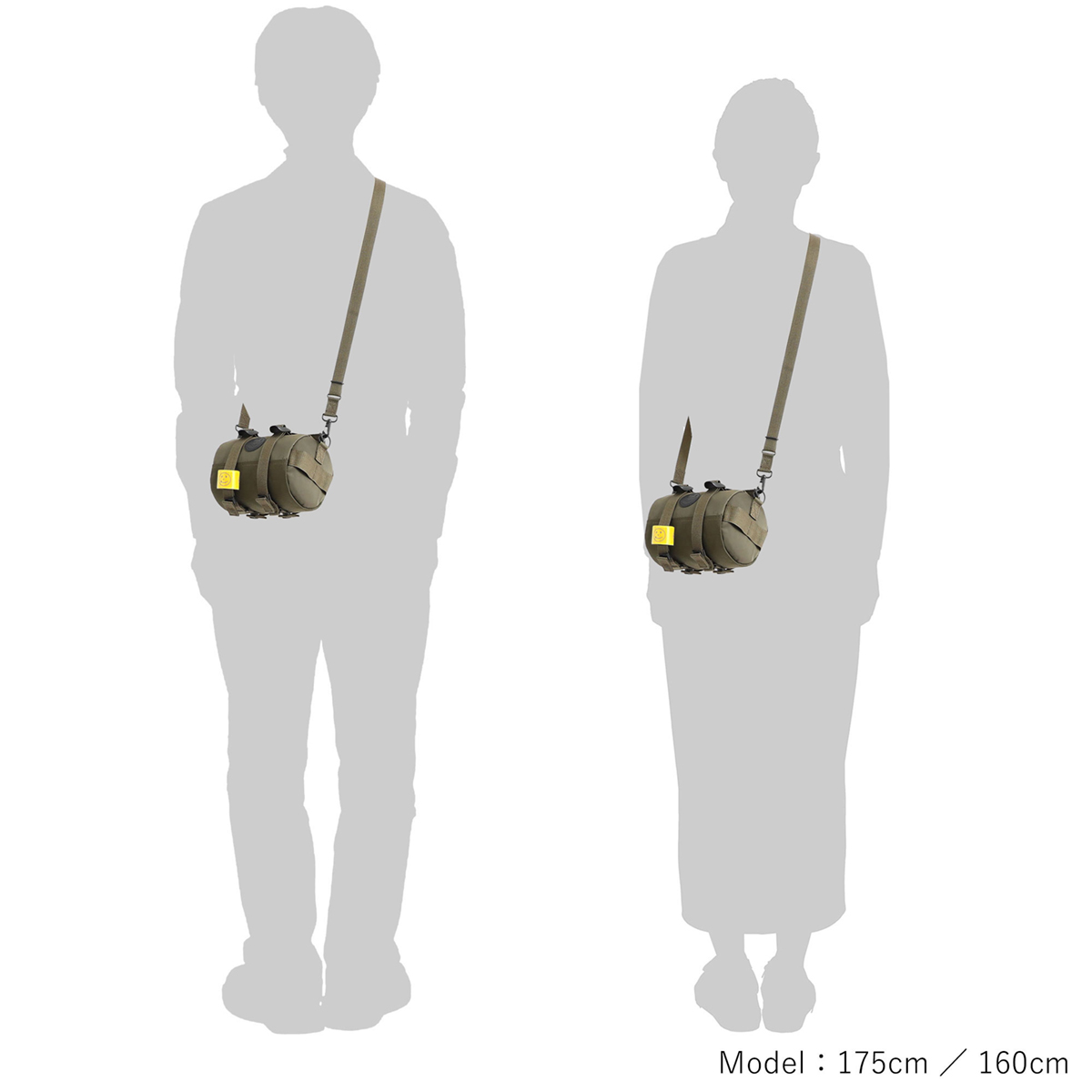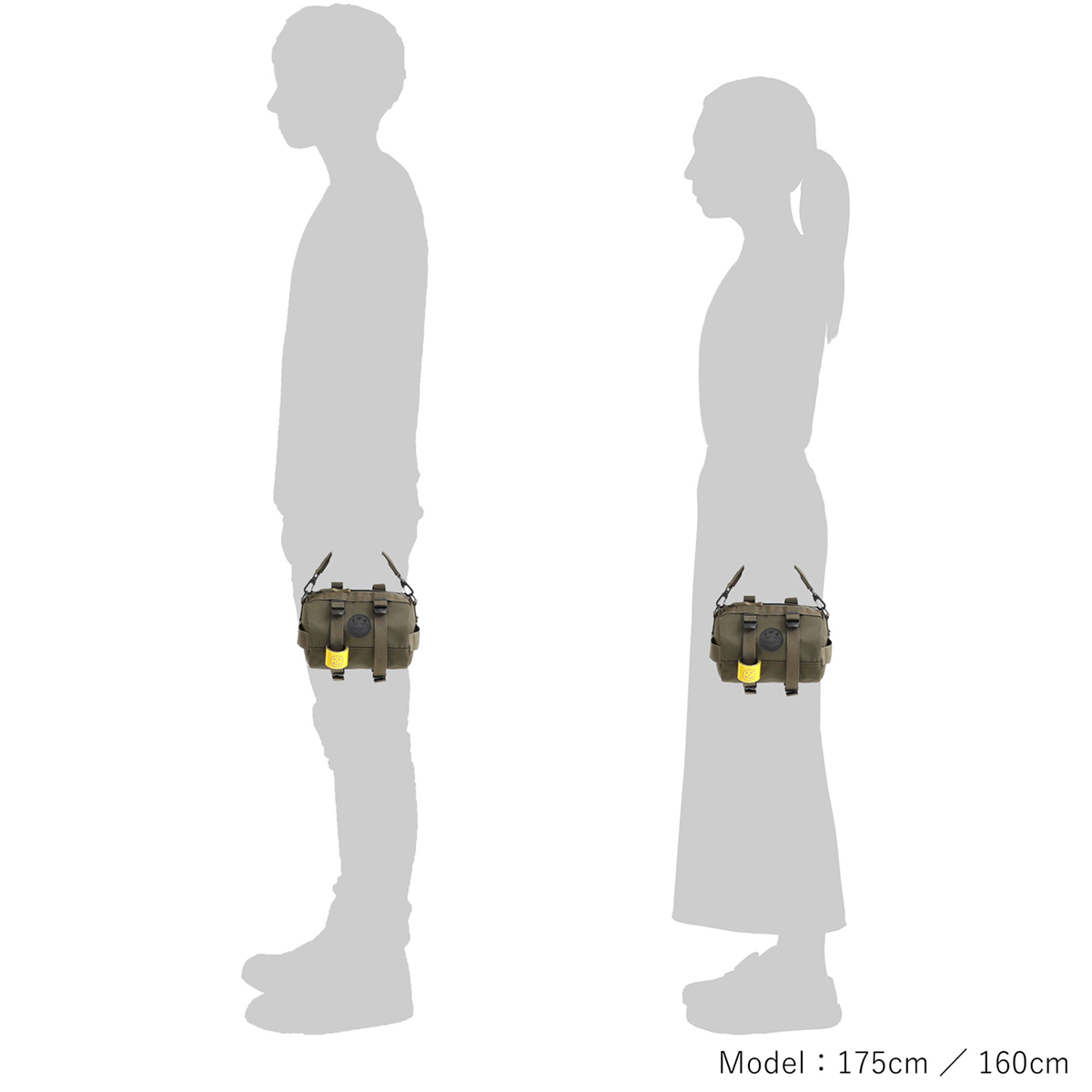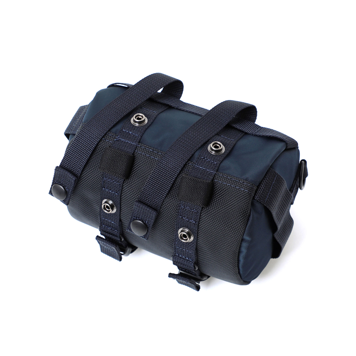 ロールバッグはウォレットやスマートフォンなど、身の回りの必需品を収納できるサイズで、普段使いやサイクリング時に使用することができる機能的なアイテムです。取り外し可能なハンドルとショルダーストラップが付属し、肩掛けだけでなく手持ちでも使える2WAY仕様です。背面に配したナイロンテープで自転車に直接取り付けることができ、ハンドルバー バッグとして使用することも可能です。
