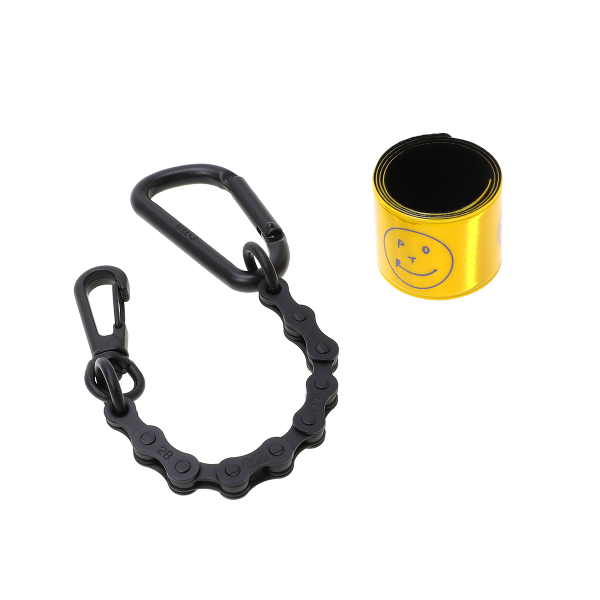 機能美と耐久性を兼ね備えた競技用の自転車チェーンを使用したオリジナルチェーン※も付属します。さまざまな使い方ができるこのチェーンは、バッグや小物、パンツのベルトループなどに取り付けてアクセサリーとして使用可能です。しなやかな動きと独特のシルエット、黒クロムメッキを施した深い黒色が魅力です。