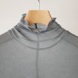 こちらは年中重宝しそうな生地感のハイネックプルオーバーです。後身に入った3本針のステッチがポイントになっています。