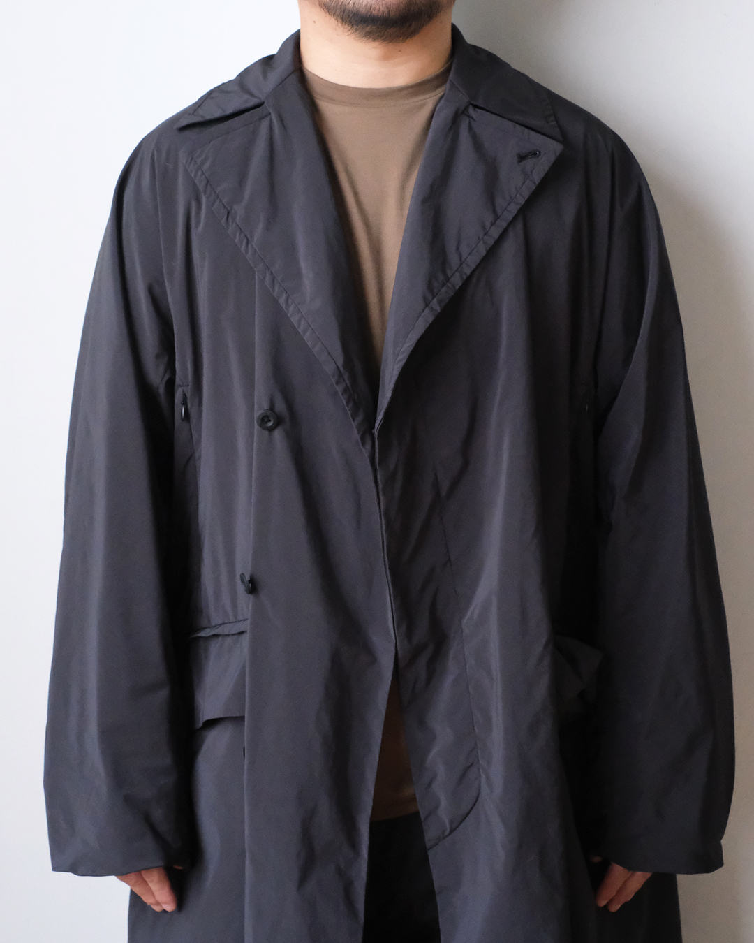 こちらのDevice Coatは温度差の激しい都市の冬において外の寒さと室内の暑さ、極端な温度変化に対する機能を備えるというコンセプトのもと開発された「Dual Point」シリーズからのリリースとなります。小松マテーレ社の特殊な中綿「KOMATHERMO」を採用しており、従来の中綿と比べても圧倒的に薄く、中綿特有のボリュームがないのでコートとは思えないくらいコンパクトに収納できるのが特徴です。その薄さとは裏腹に高い断熱性と吸湿発熱機能を備えており、着用時に人体から発せられる湿度に反応し最大2℃温度が上昇する機能素材です。