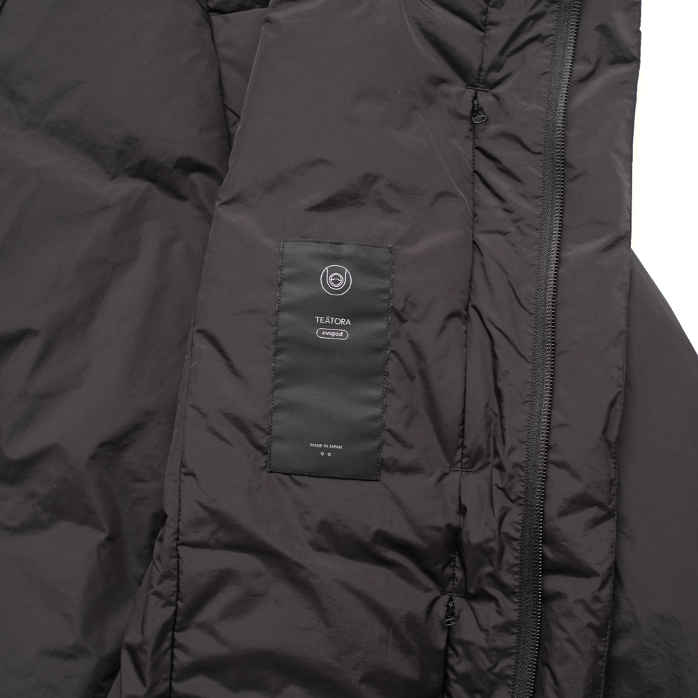 こちらのevapodシリーズで目指したのは<TEATORA>史上、最軽量アウターです。ひとたび袖を通せば暖かさからは想像もできない、それどころか着用している事すら忘れてしまう程の圧倒的な軽さを誇り、これまで体験した事のない軽さがお手持ちのアウターの重量からあなたを解放します。中綿には1956年から南極観測隊に採用されている老舗日本ダウンメーカーZANTER社製のダウンを採用しており、暖かな空気を纏っている様な信頼の保温力が特徴です。表地に採用された第一織物による超軽量素材でパッキングする事で軽やかさを実現しています。