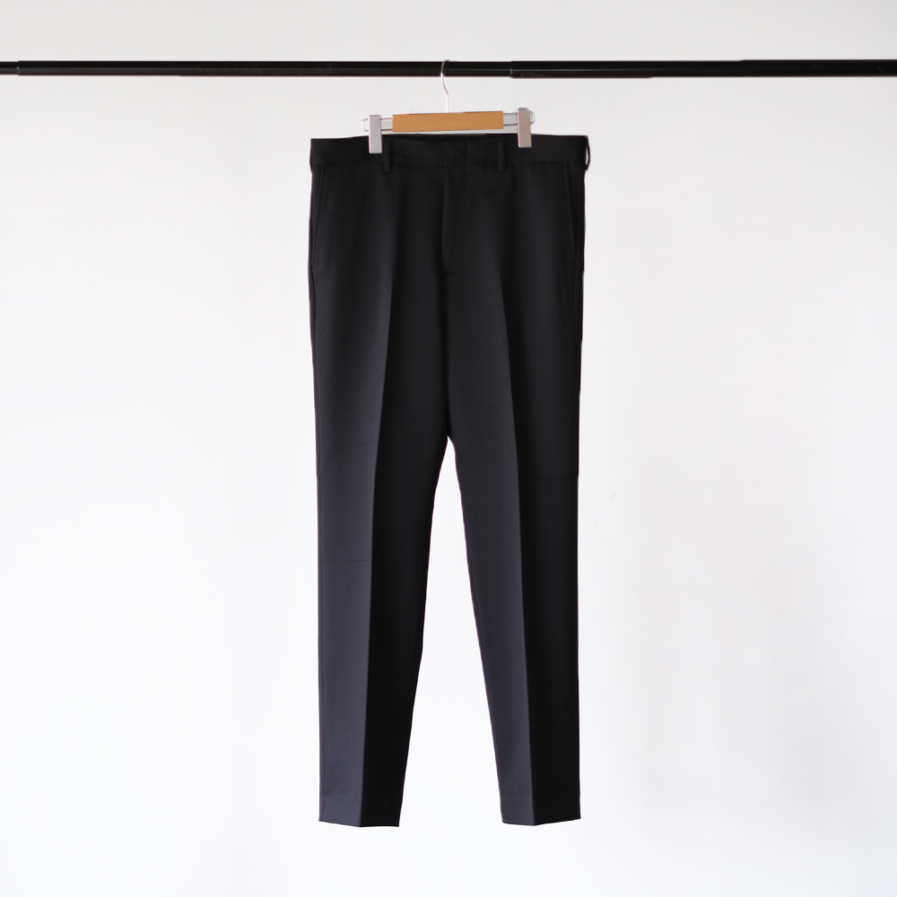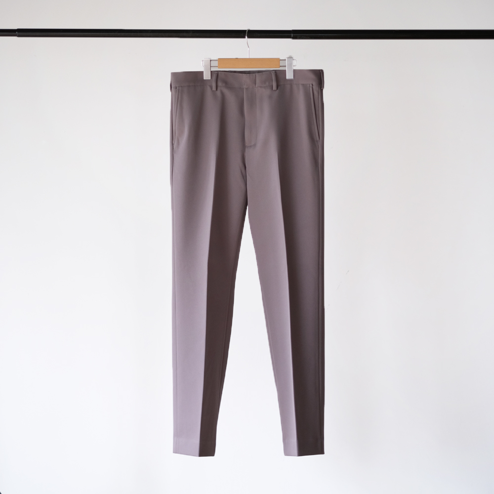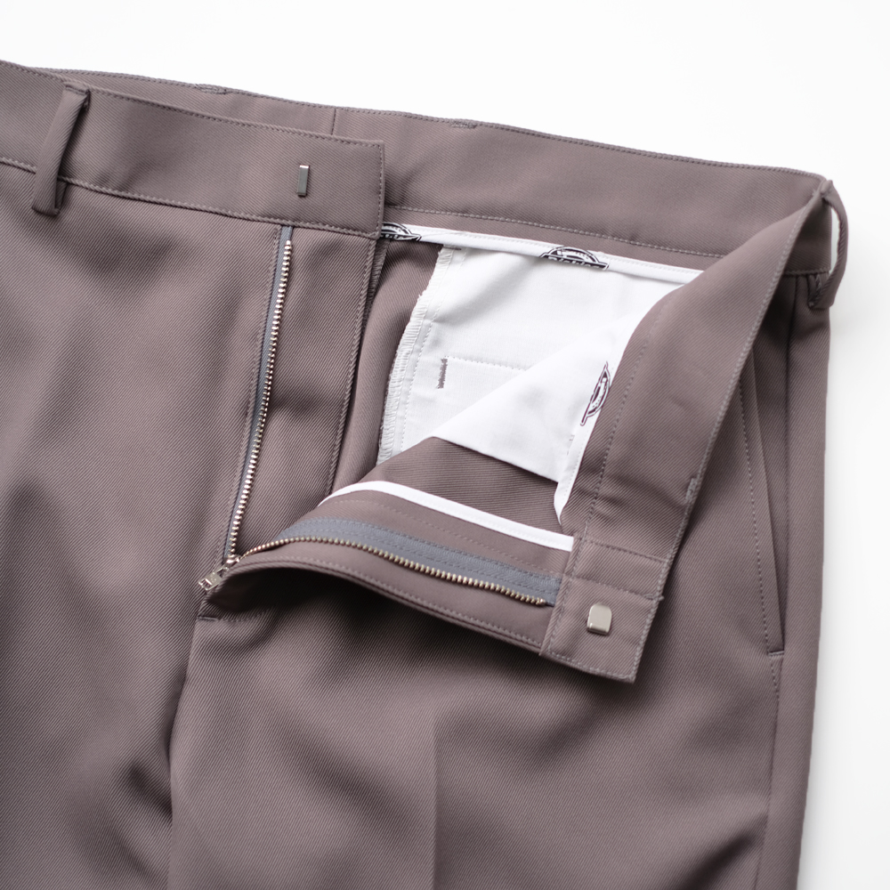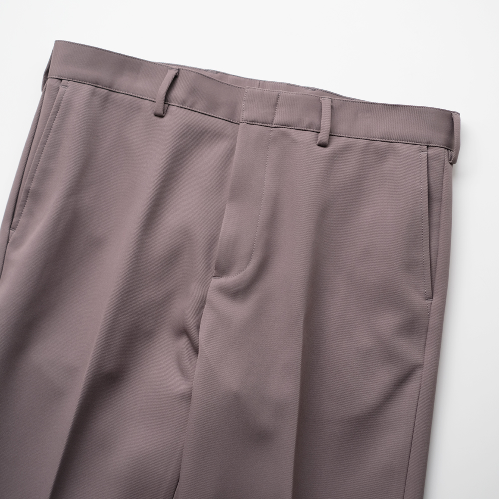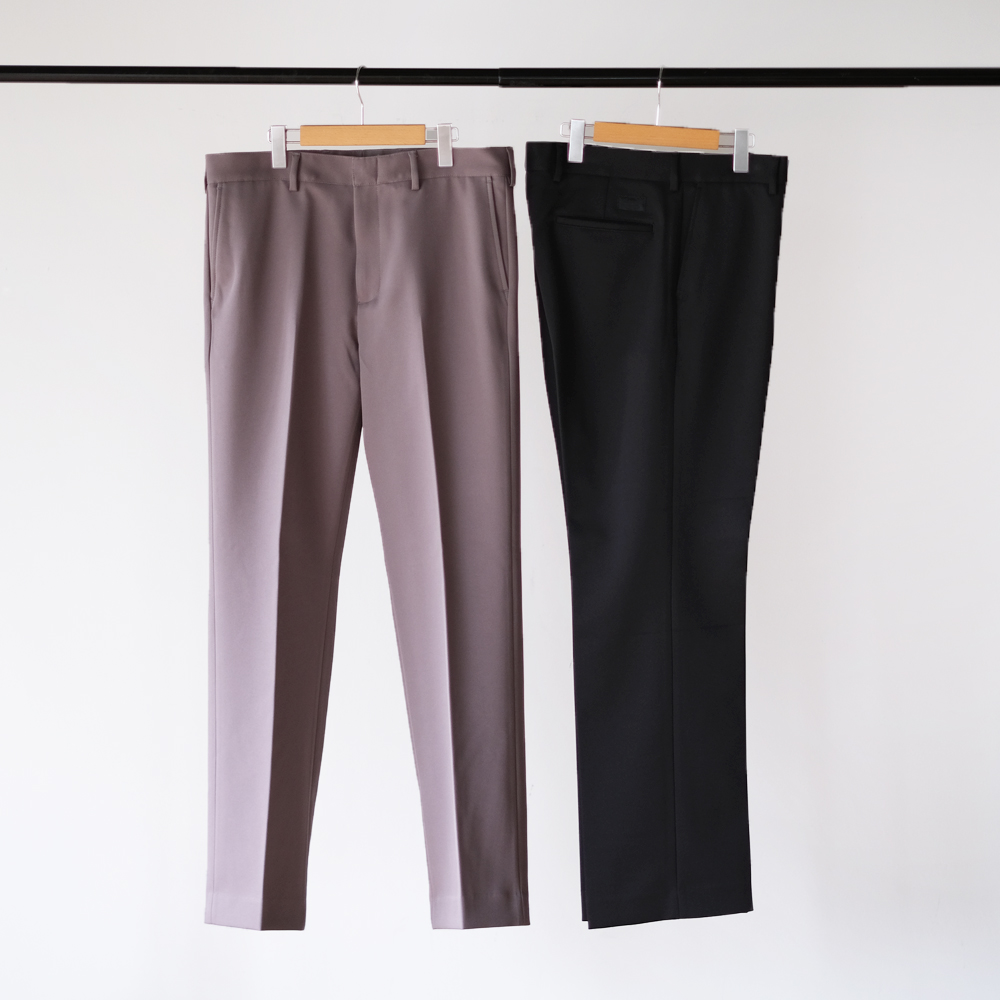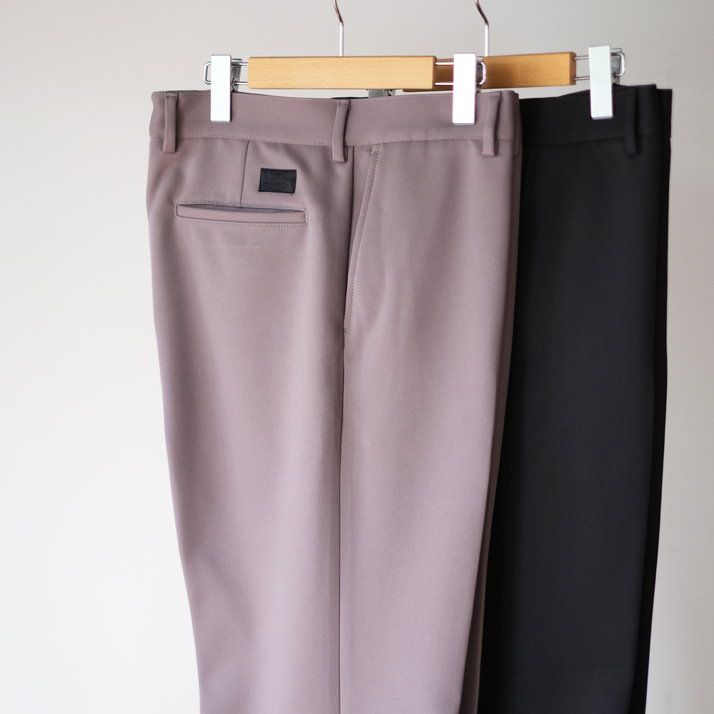 こちらはヨコ三重織りのマトラッセ組織になっており、軽量でありながらハリと肉感を表現されたスラックスです。糸にはリサイクル100%を使用しており、シワになりにくい生地です。