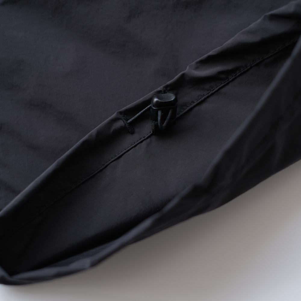 こちらは複合仮撚糸を使用した高密度なナイロンタフタになります。 特殊な加工を施し、糸の収縮を利用する事で自然なワッシャー感とコンパクトな密度感を出しています。 撥水加工が施されています。