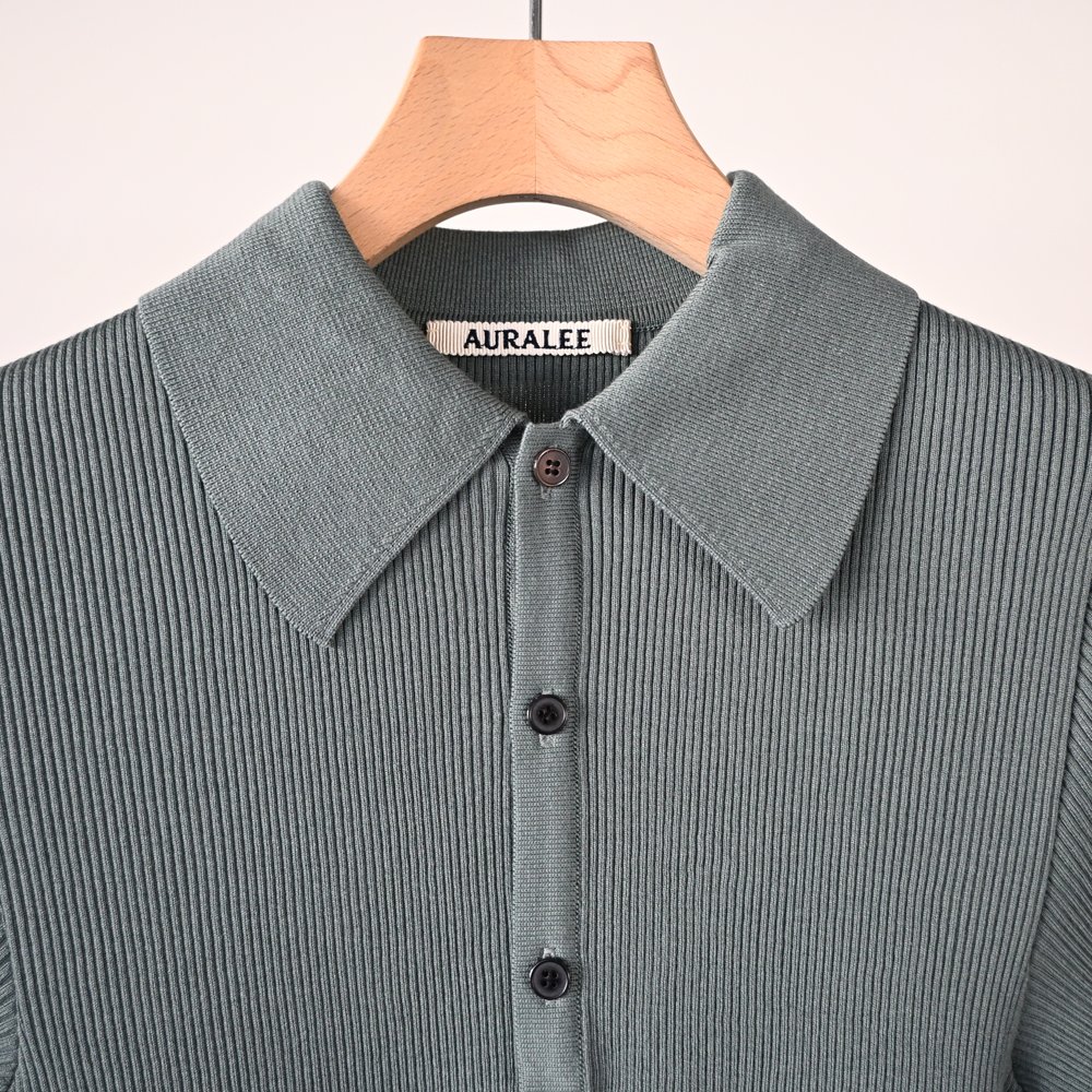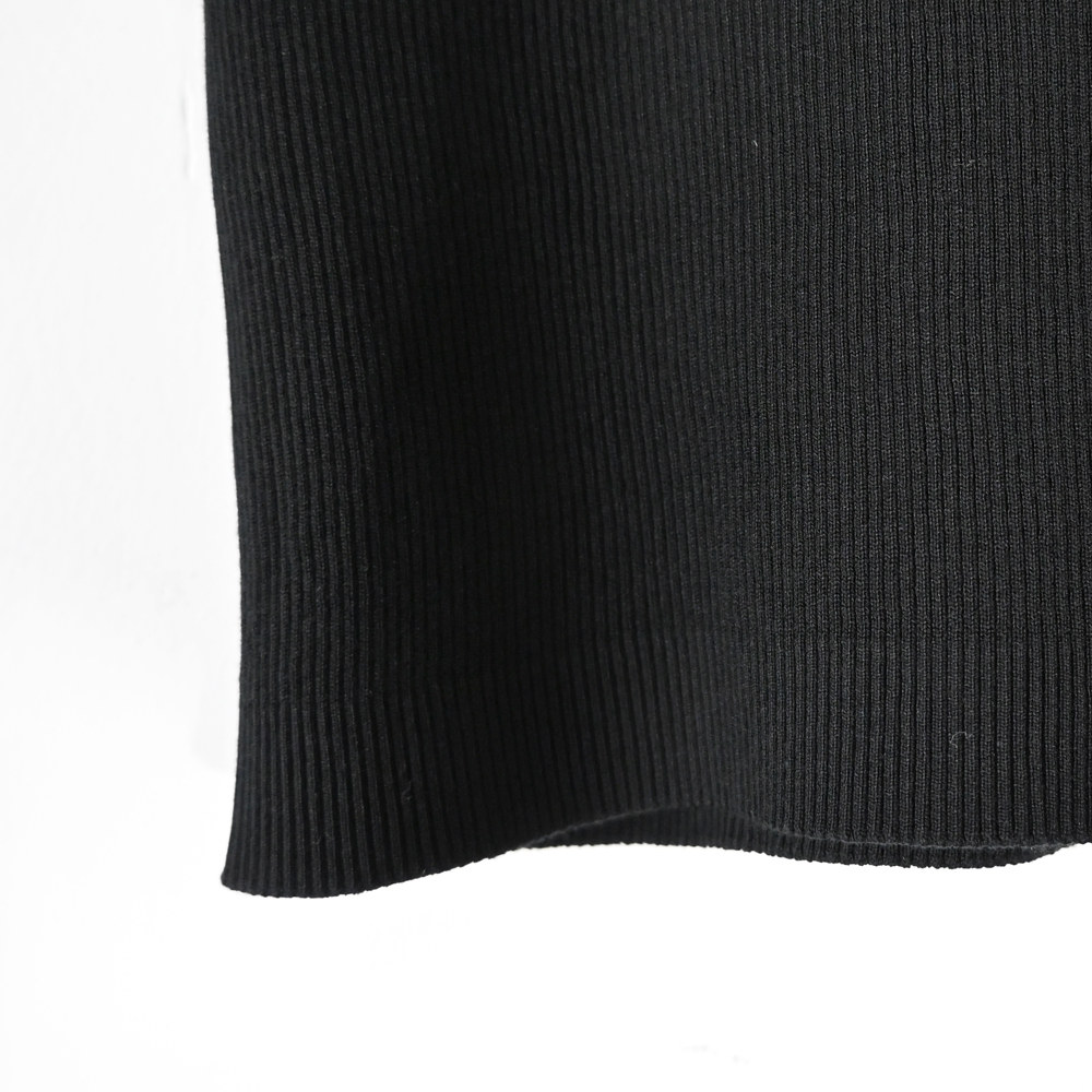 こちらはエジプトの超長綿であるギザコットンを使用し、20ゲージで限界まで度目をつめて丁寧に編み立てたリブニットになります。綺麗な光沢と適度なハリ感があるのが特徴のアイテムになります。
