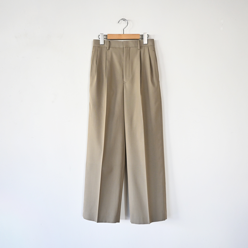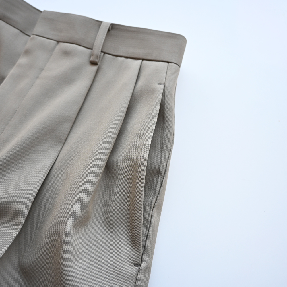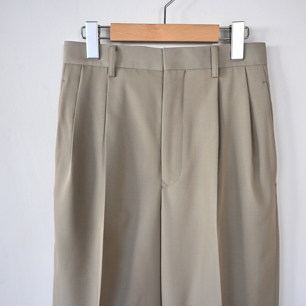 Light Wool Max Gabardine Two Tuck Slacks