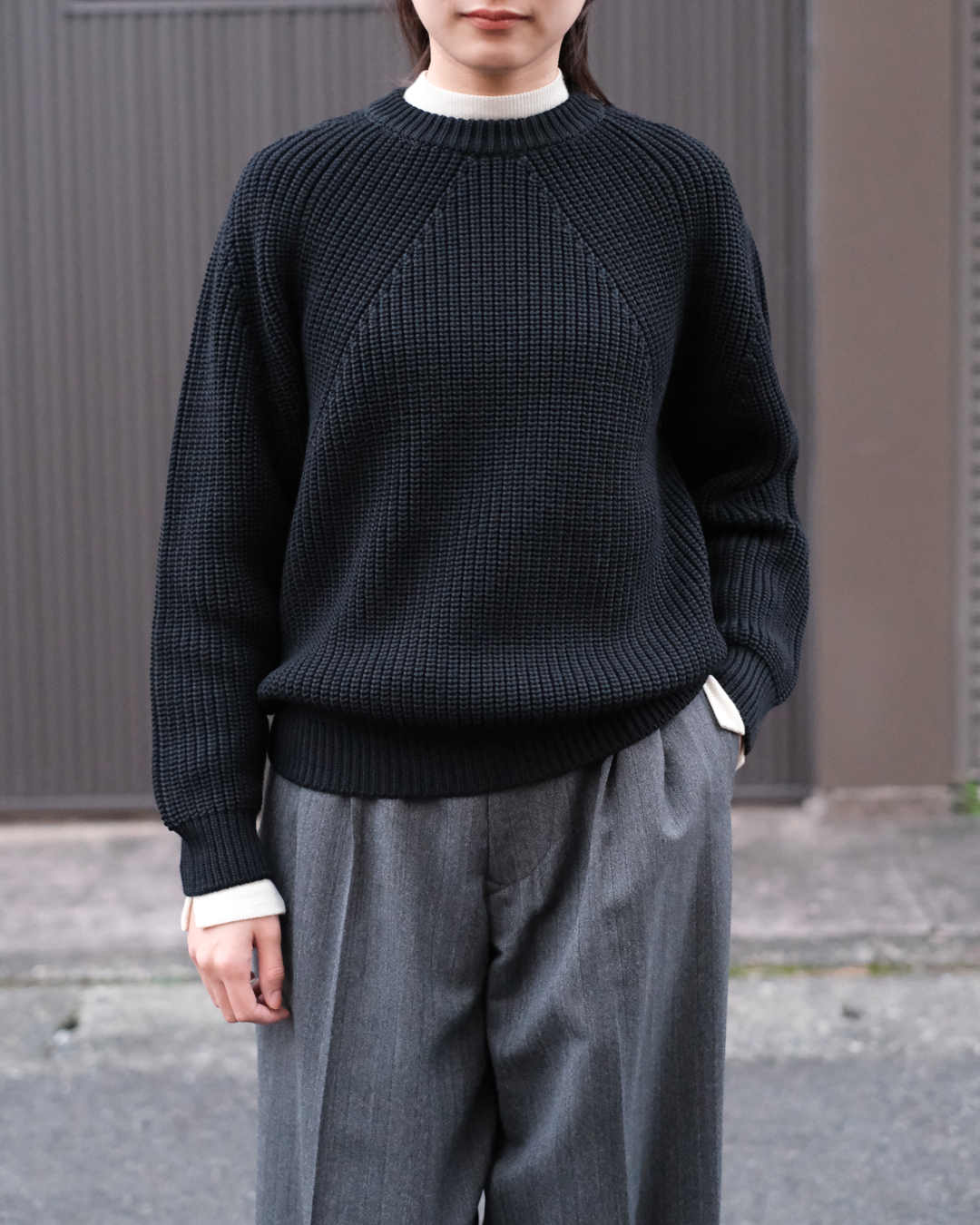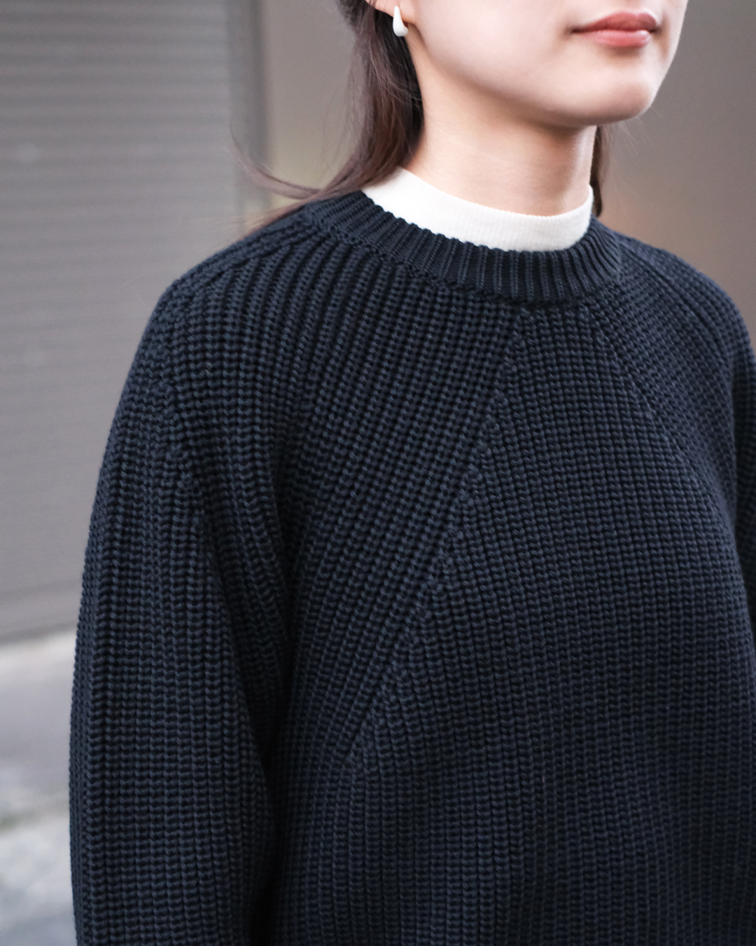 こちらのニットは定番的に人気の高いリブニットになります。編み目の美しさや耐久性、柔らかい肌触りが魅力の一着です。チクチクしないので、ニットを着慣れない方にもおすすめです。